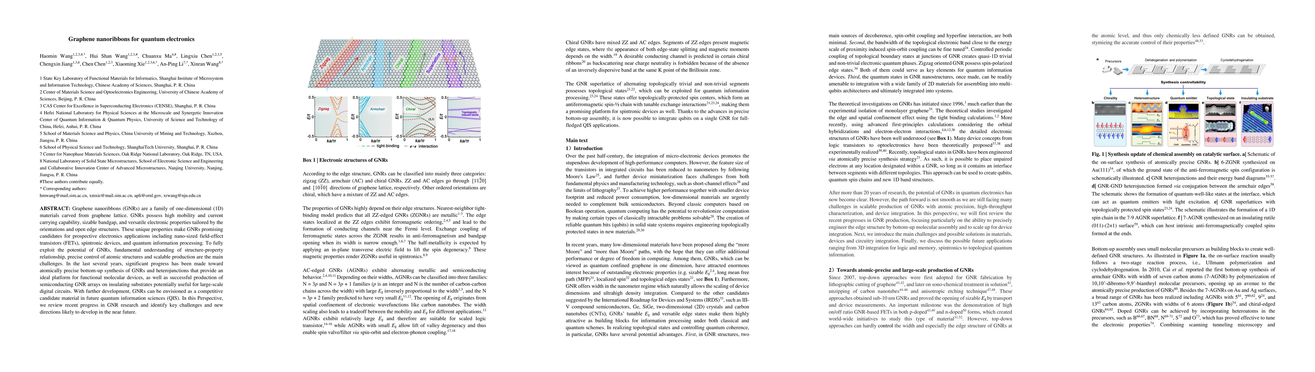 Graphene nanoribbons (GNRs) are a family of one-dimensional (1D) materials carved from graphene lattice. GNRs possess high mobility and current carrying capability, sizable bandgap, and versatile electronic properties tailored by the orientations and open edge structures. These unique properties make GNRs promising candidates for prospective electronics applications including nano-sized field-effect transistors (FETs), spintronic devices, and quantum information processing. To fully exploit the potential of GNRs, fundamental understanding of structure-property relationship, precise control of atomic structures and scalable production are the main challenges. In the last several years, significant progress has been made toward atomically precise bottom-up synthesis of GNRs and heterojunctions that provide an ideal platform for functional molecular devices, as well as successful production of semiconducting GNR arrays on insulating substrates potentially useful for large-scale digital circuits. With further development, GNRs can be envisioned as a competitive candidate material in future quantum information sciences (QIS). In this Perspective, we review recent progress in GNR research and identify key challenges and new directions likely to develop in the near future.