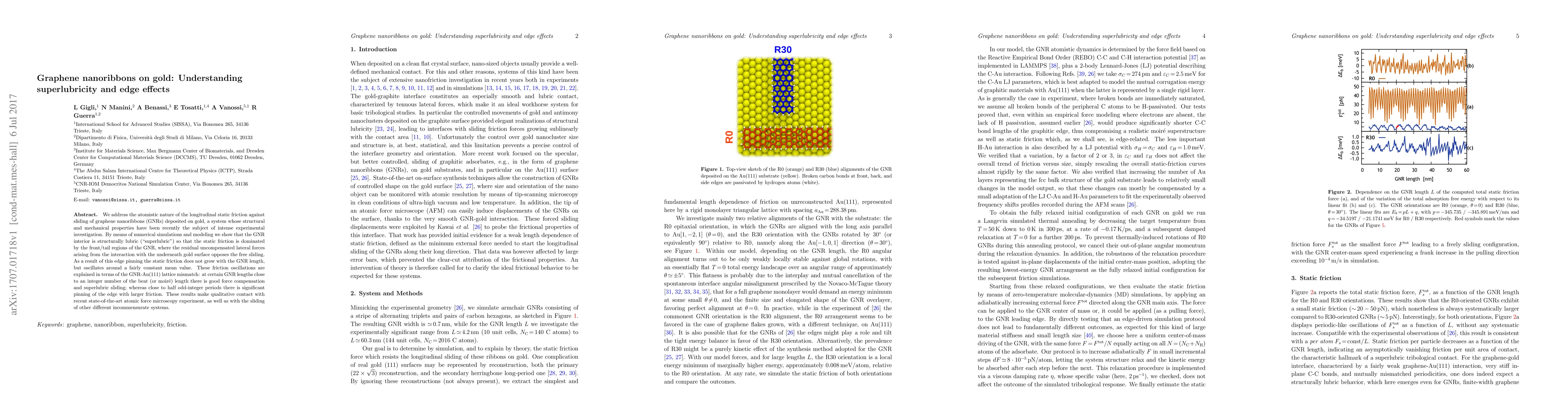 This paper investigates the static friction of graphene nanoribbons on gold using simulations, revealing that the interior of the ribbons is superlubric while friction is dominated by the edge regions. The friction oscillates due to the GNR-Au(111) lattice mismatch, showing good force compensation at certain lengths and significant edge pinning at others.