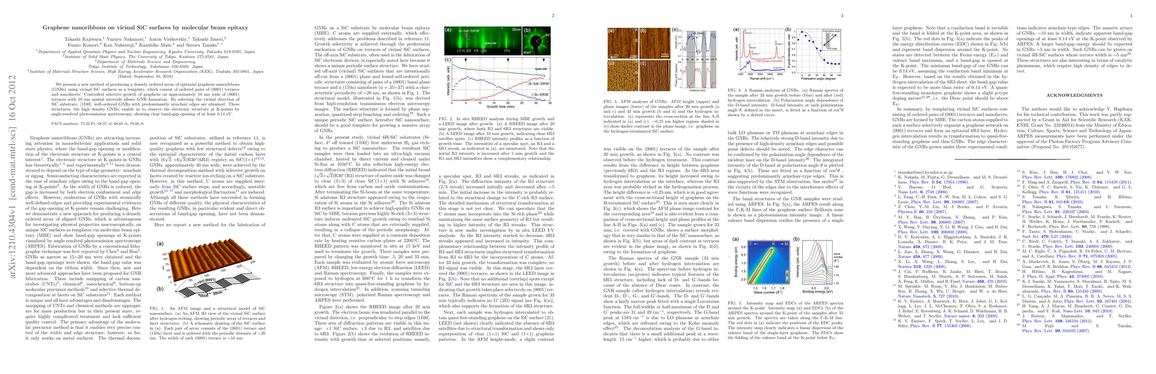This study introduces a method for producing densely ordered graphene nanoribbons on vicinal SiC surfaces via molecular beam epitaxy, resulting in well-ordered armchair-edged ribbons. The high-density GNRs facilitate observation of electronic structure via angle-resolved photoemission spectroscopy, revealing a band-gap opening of at least 0.14 eV.