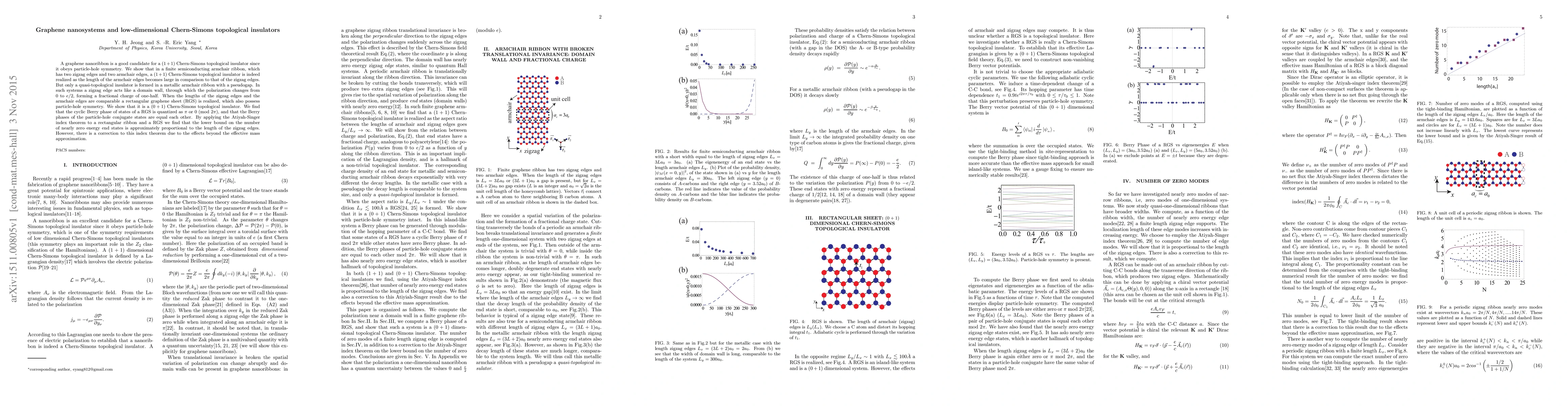 Researchers investigate graphene nanosystems as potential topological insulators, finding that certain configurations exhibit particle-hole symmetry, leading to unique properties such as fractional charges and quantized Berry phases.