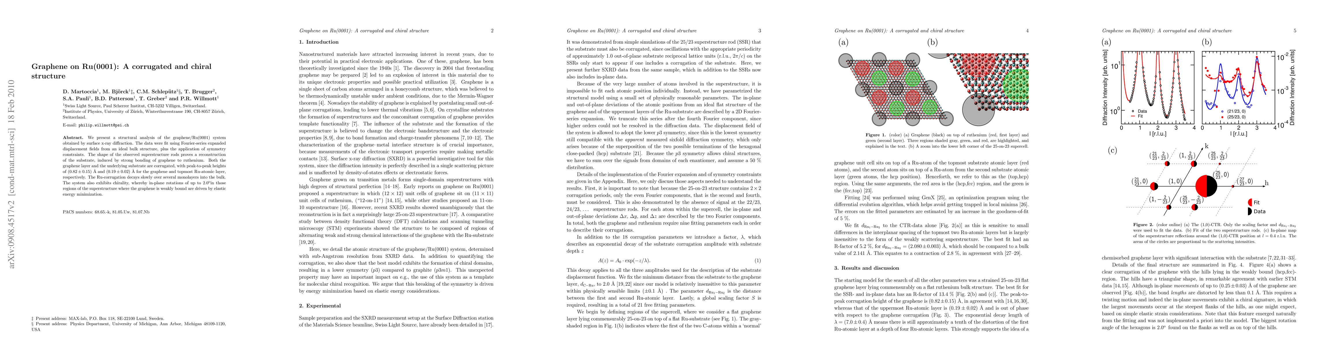 This study reveals a graphene/Ru(0001) system with a reconstructed, corrugated, and chiral structure, as analyzed by surface x-ray diffraction, showing strong bonding-induced substrate distortion and in-plane rotations driven by elastic energy minimization.