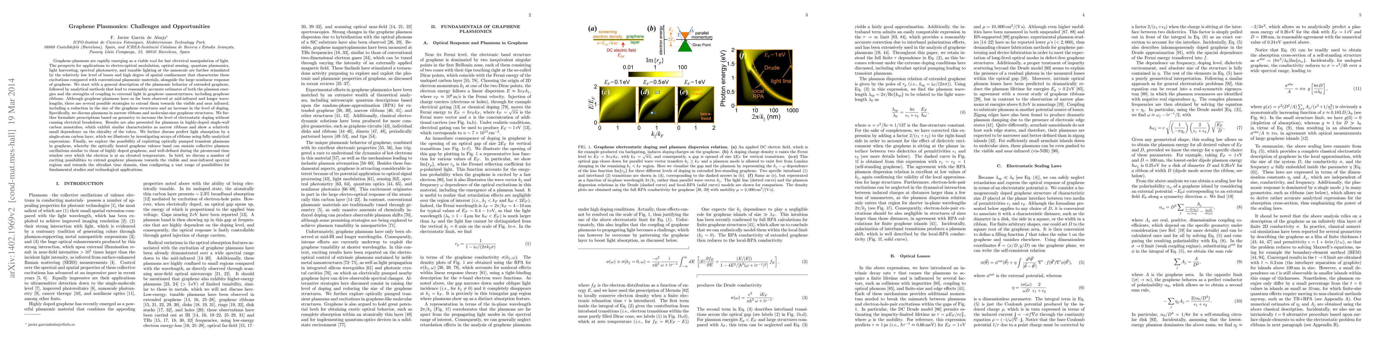 Graphene plasmons offer promising avenues for nanoscale electro-optical modulation and sensing due to their low losses and high confinement. Strategies to extend these plasmons into the visible spectrum include reducing graphene structure sizes and increasing doping levels, with particular focus on narrow ribbons and carbon nanotubes.