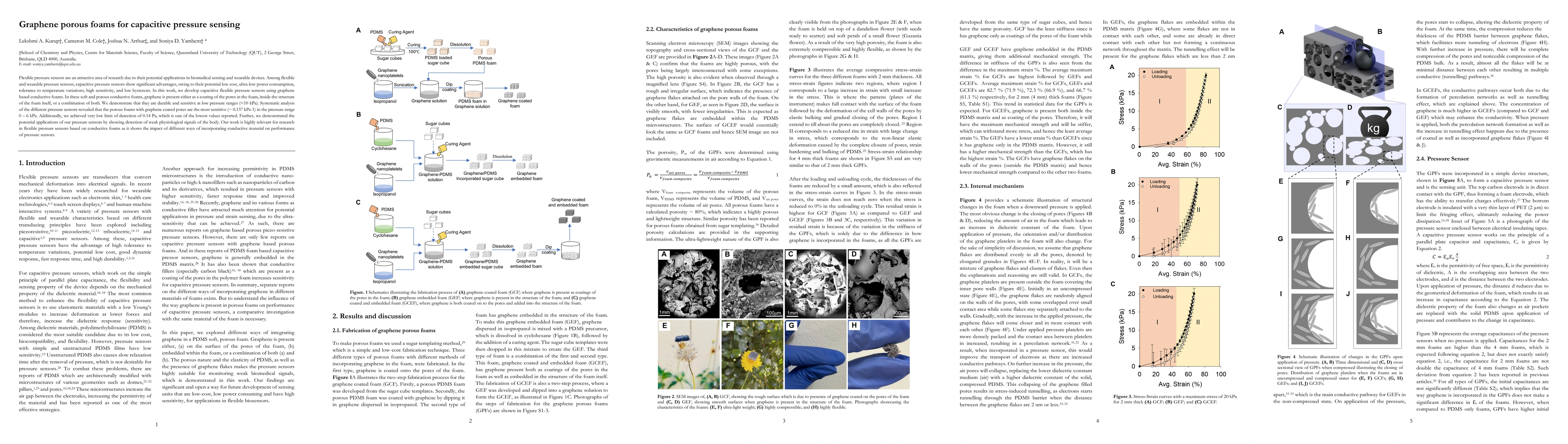 The research utilized a sugar templating method to fabricate graphene porous foams (GPFs) with graphene integrated in different ways: as coatings of the pores (GCF), embedded in the PDMS matrix (GEF), and a combination of both (GCEF). Capacitive pressure sensors were then fabricated using these GPFs.