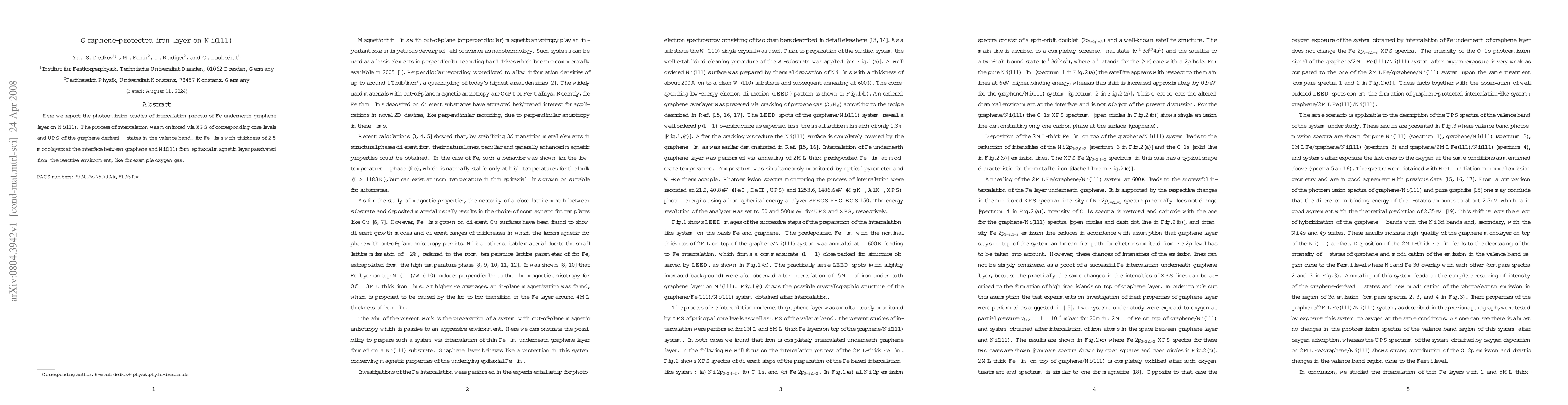 This study investigates the intercalation of Fe under a graphene layer on Ni(111) using photoemission techniques, revealing the formation of an epitaxial, protected magnetic Fe layer that remains stable in reactive environments like oxygen gas. XPS and UPS analyses confirm the process and structural stability of the iron layer.