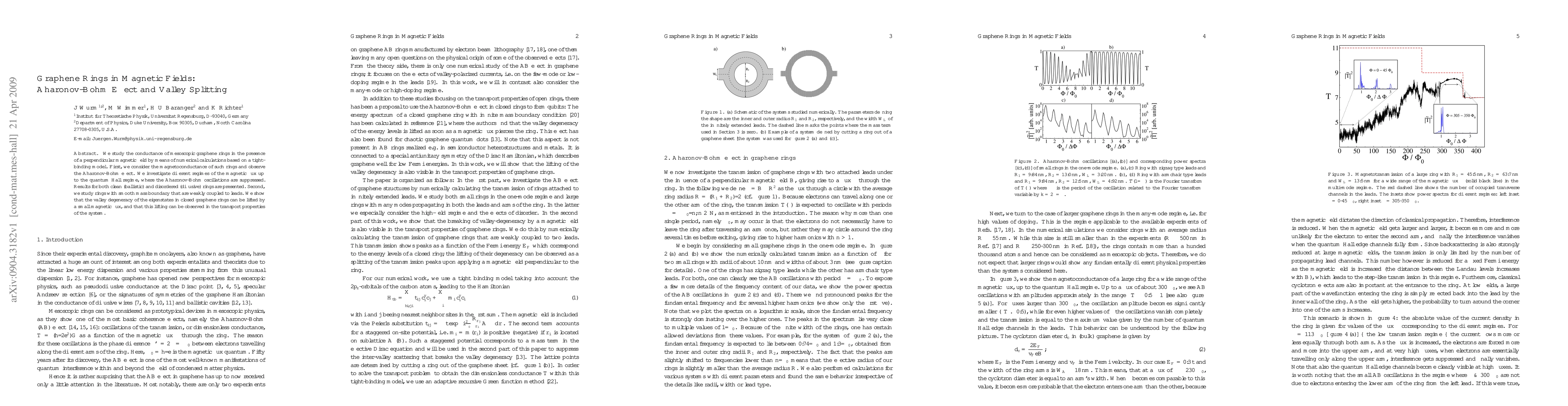This paper investigates the magnetoconductance of mesoscopic graphene rings using a tight-binding model, demonstrating the Aharonov-Bohm effect and valley splitting in both clean and disordered regimes, with valley degeneracy lifted by small magnetic flux affecting transport properties.