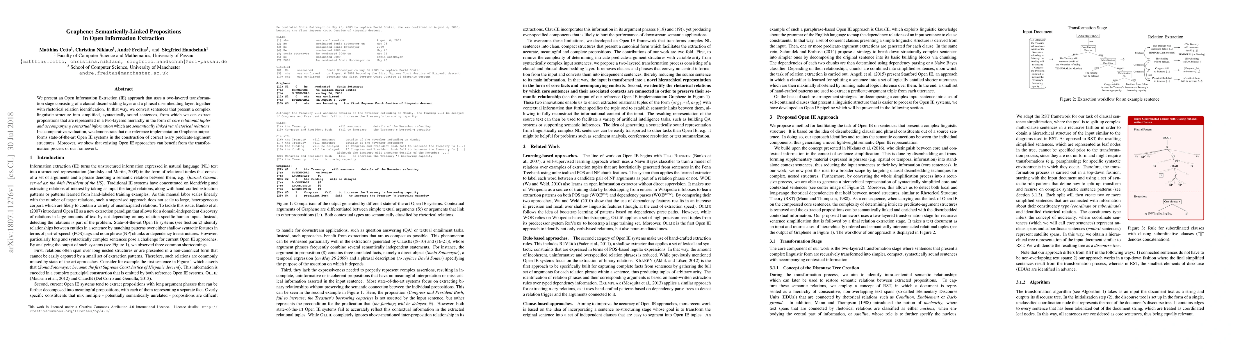 The research introduces Graphene, an Open Information Extraction (IE) method that simplifies complex sentence structures into syntactically sound ones for proposition extraction. This two-layered transformation includes clausal and phrasal disembedding along with rhetorical relation identification. Graphene outperforms existing Open IE systems in constructing accurate n-ary predicate-argument structures, and its transformation process can enhance other Open IE approaches.