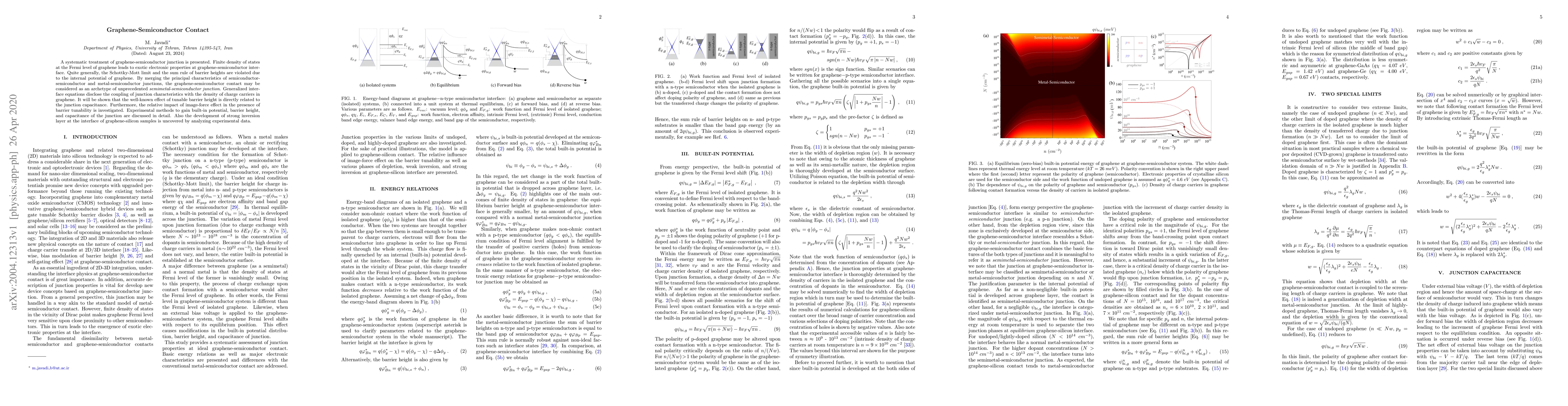 A systematic treatment of graphene-semiconductor junction is presented. Finite density of states at the Fermi level of graphene leads to exotic electronic properties at graphene-semiconductor interface. Quite generally, the Schottky-Mott limit and the sum rule of barrier heights are violated due to the internal potential of graphene. By merging the principal characteristics of semiconductor-semiconductor and metal-semiconductor junctions, the graphene-semiconductor contact may be considered as an archetype of unprecedented \emph{semimetal-semiconductor junction}. Generalized interface equations disclose the coupling of junction characteristics with the density of charge carriers in graphene. It will be shown that the well-known effect of tunable barrier height is directly related to the junction capacitance. Furthermore, the relative impact of image-force effect in the presence of barrier tunability is investigated. Experimental methods to gain built-in potential, barrier height, and capacitance of the junction are discussed in detail. Also the development of strong inversion layer at the interface of graphene-silicon samples is uncovered by analyzing experimental data.