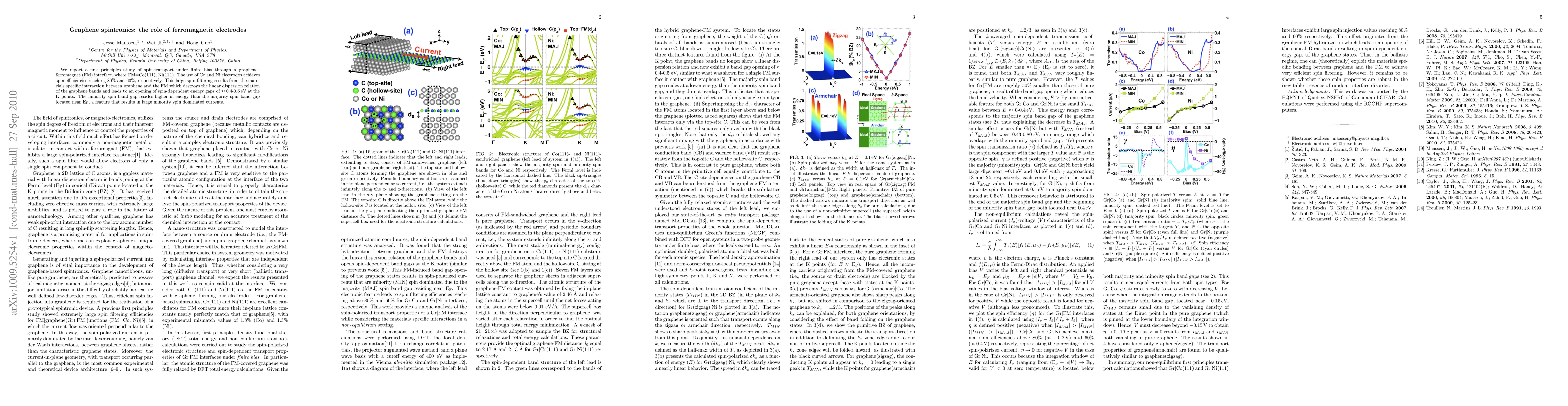 We report a first principles study of spin-transport under finite bias through a graphene-ferromagnet (FM) interface, where FM=Co(111), Ni(111). The use of Co and Ni electrodes achieves spin efficiencies reaching 80% and 60%, respectively. This large spin filtering results from the materials specific interaction between graphene and the FM which destroys the linear dispersion relation of the graphene bands and leads to an opening of spin-dependent energy gaps of roughly 0.4-0.5 eV at the K points. The minority spin band gap resides higher in energy than the majority spin band gap located near the Fermi level, a feature that results in large minority spin dominated currents.