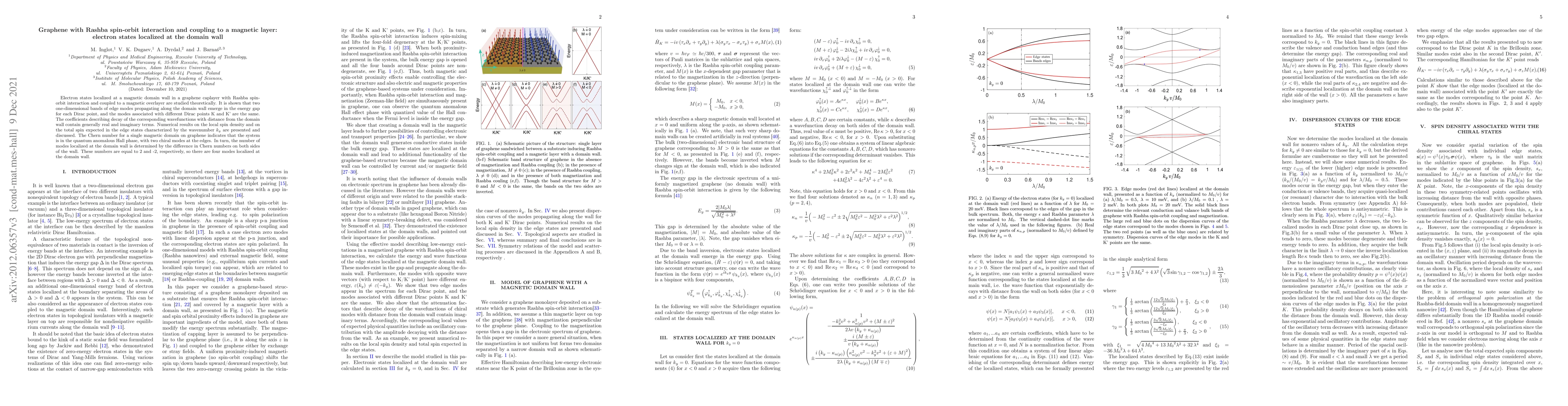 This paper investigates electron states in graphene with Rashba spin-orbit interaction coupled to a magnetic layer, revealing localized edge modes at a magnetic domain wall. The study finds four localized modes, indicating the system enters the quantum anomalous Hall phase with chiral edge states.