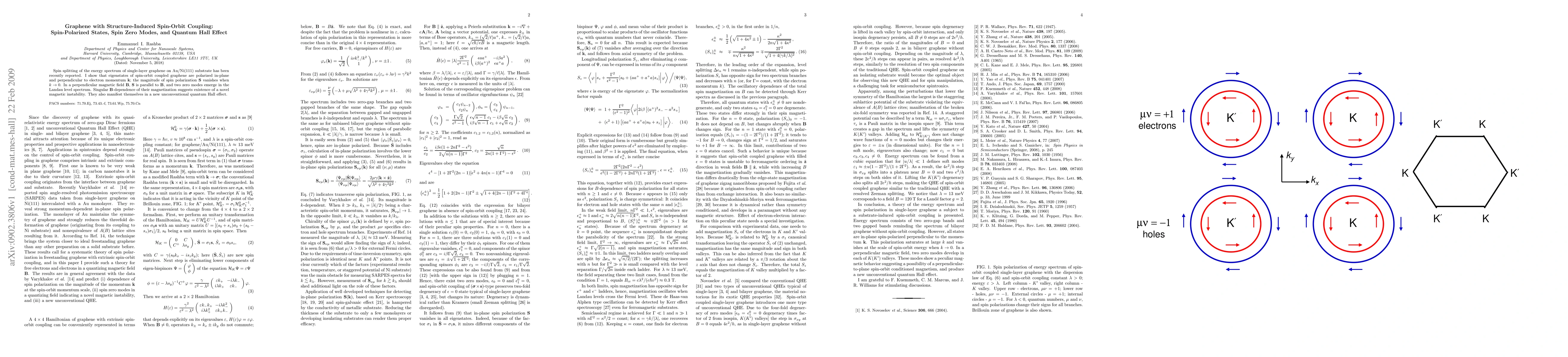 Spin splitting of the energy spectrum of single-layer graphene on Au/Ni(111) substrate has been recently reported. I show that eigenstates of spin-orbit coupled graphene are polarized in-plane and perpendicular to electron momentum $\bf k$; the magnitude of spin polarization $\bf S$ vanishes when $k \to 0$. In a perpendicular magnetic field $\bf B$, $\bf S$ is parallel to $\bf B$, and two zero modes emerge in the Landau level spectrum. Singular $\bf B$-dependence of their magnetization suggests existence of a novel magnetic instability. They also manifest themselves in a new unconventional quantum Hall effect.