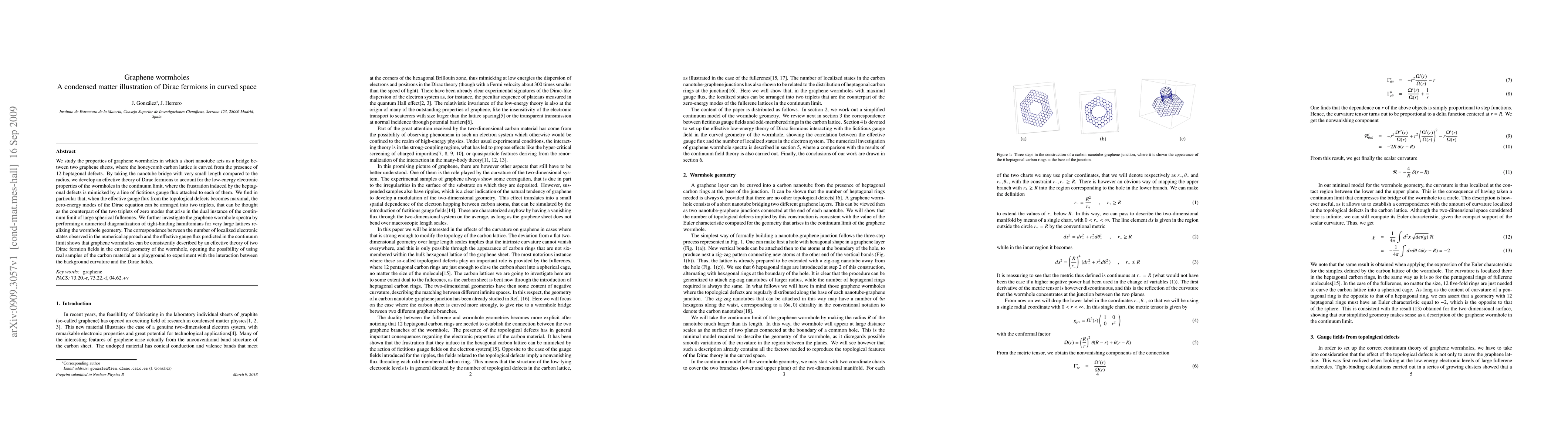 Graphene wormholes exhibit zero-energy modes that can be described as two triplets of Dirac fermions in curved space, offering a new playground for experimenting with the interaction between curvature and particles.