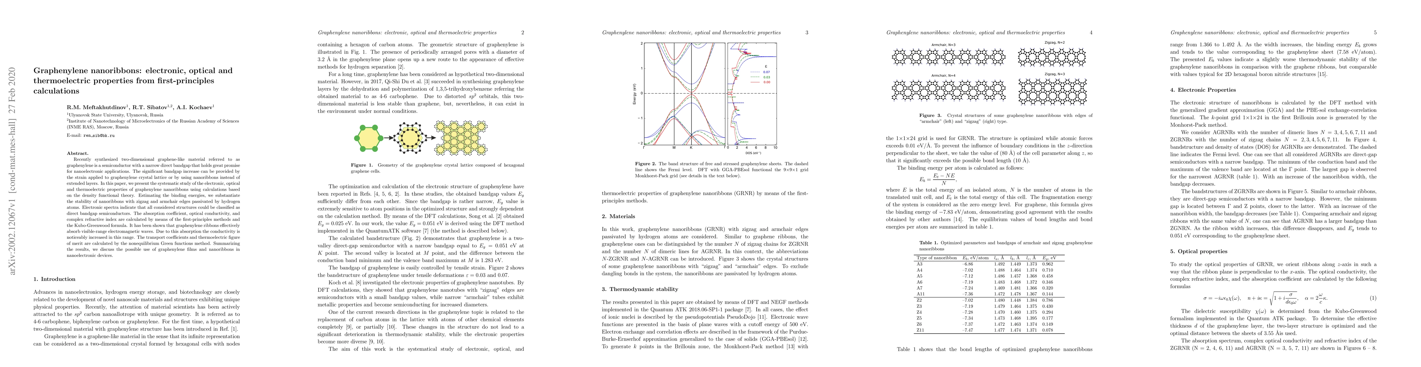This paper investigates the electronic, optical, and thermoelectric properties of graphenylene nanoribbons using first-principles calculations. The study reveals that graphenylene nanoribbons with zigzag and armchair edges are stable and can function as direct bandgap semiconductors, effectively absorbing visible light and potentially improving thermoelectric performance for nanoelectronic applications.
