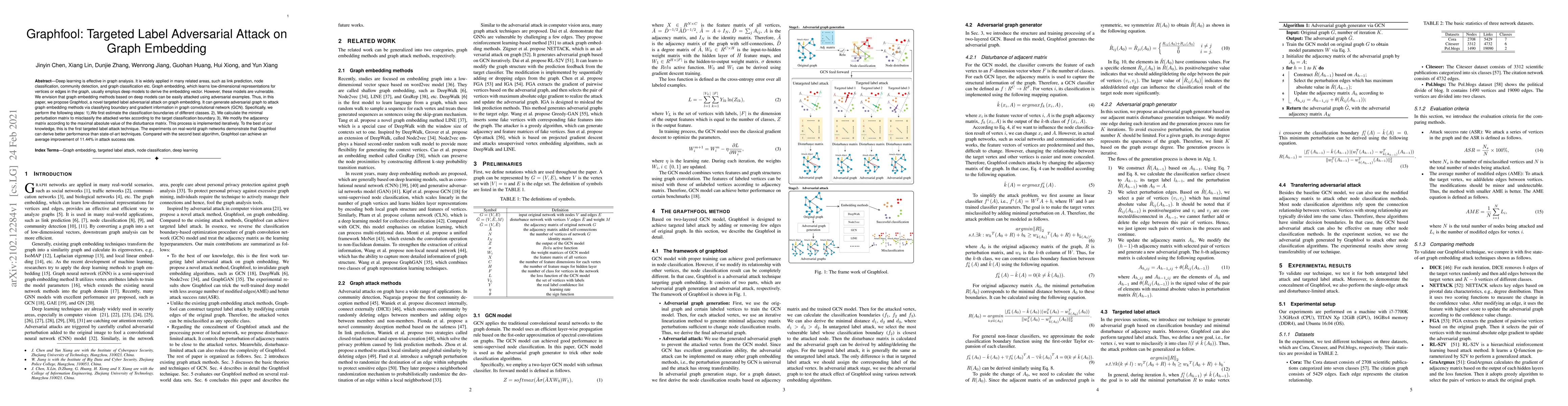 Graphfool introduces a novel targeted adversarial attack method to compromise graph embedding models, specifically targeting classification boundaries in graph convolutional networks. Experiments show Graphfool outperforms existing techniques, achieving an average 11.44% improvement in attack success rate on real-world graph networks.
