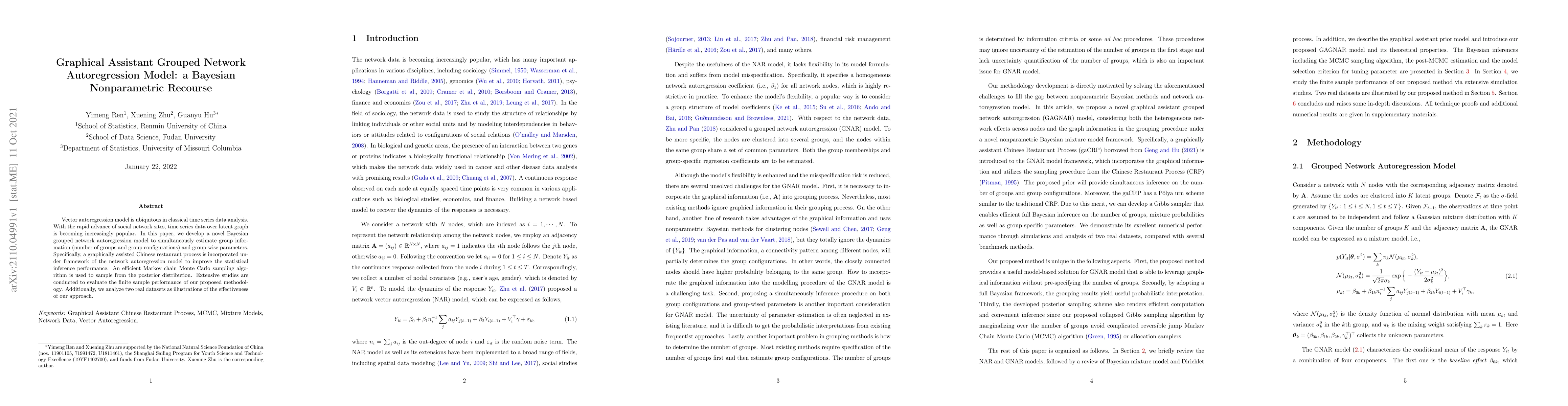 This paper introduces a novel Bayesian grouped network autoregression model to estimate group information and parameters in time series data over latent graphs. The model employs a graphically assisted Chinese restaurant process to enhance inference, and uses a Markov chain Monte Carlo algorithm for posterior sampling. The methodology is evaluated through extensive studies and real dataset analyses.