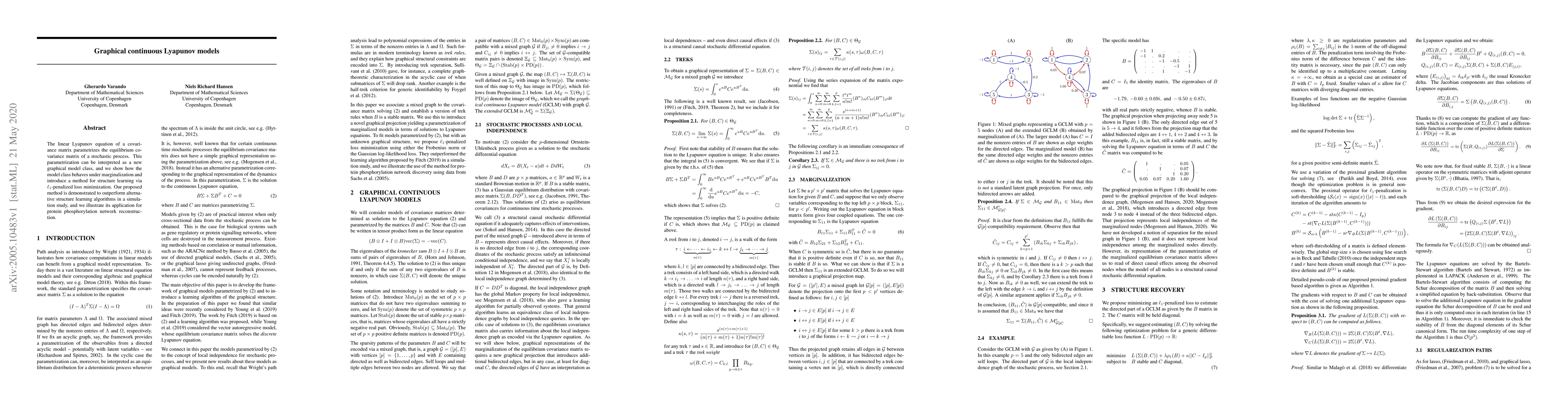 This paper introduces a graphical continuous Lyapunov model for the equilibrium covariance matrix of stochastic processes, demonstrating its performance via $\ell_1$-penalized loss minimization. The method outperforms alternatives in simulations and successfully reconstructs protein phosphorylation networks.