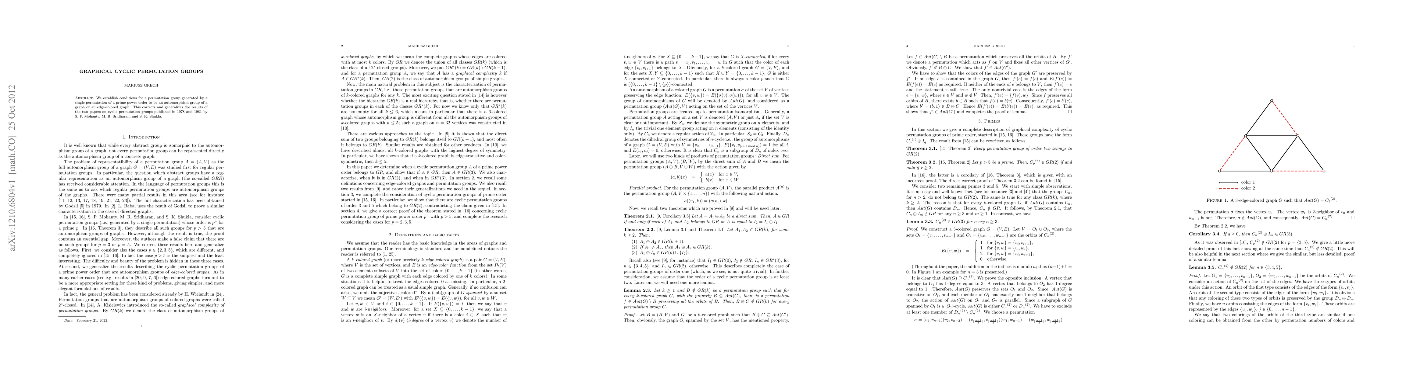 The paper presents detailed proofs and lemmas that generalize and correct previous findings on cyclic permutation groups as automorphism groups of graphs and edge-colored graphs.