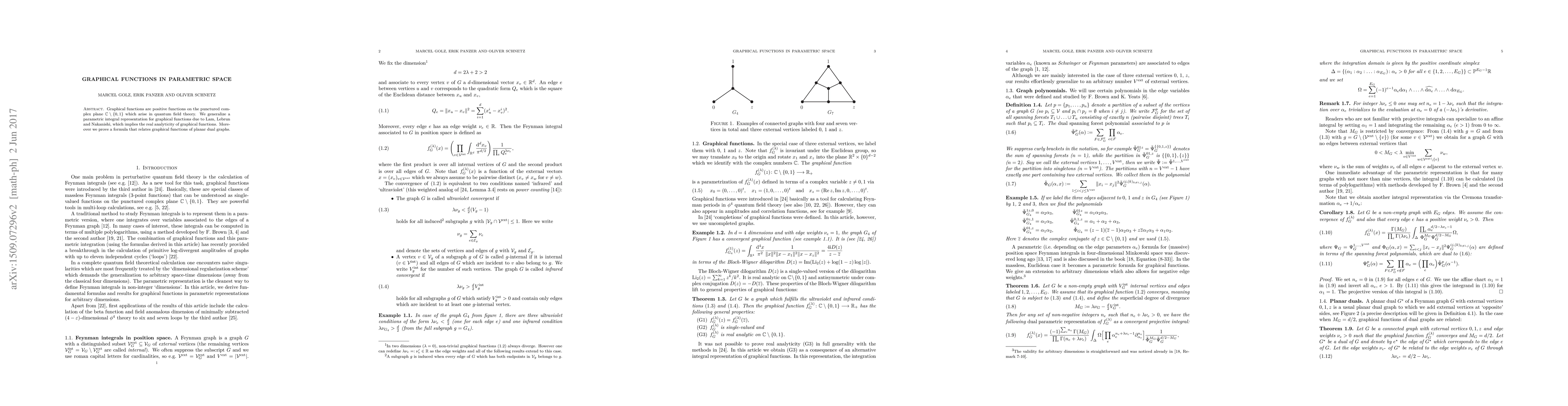 Researchers generalized a parametric integral representation for graphical functions in quantum field theory, proving their real analyticity and relating them to planar dual graphs.