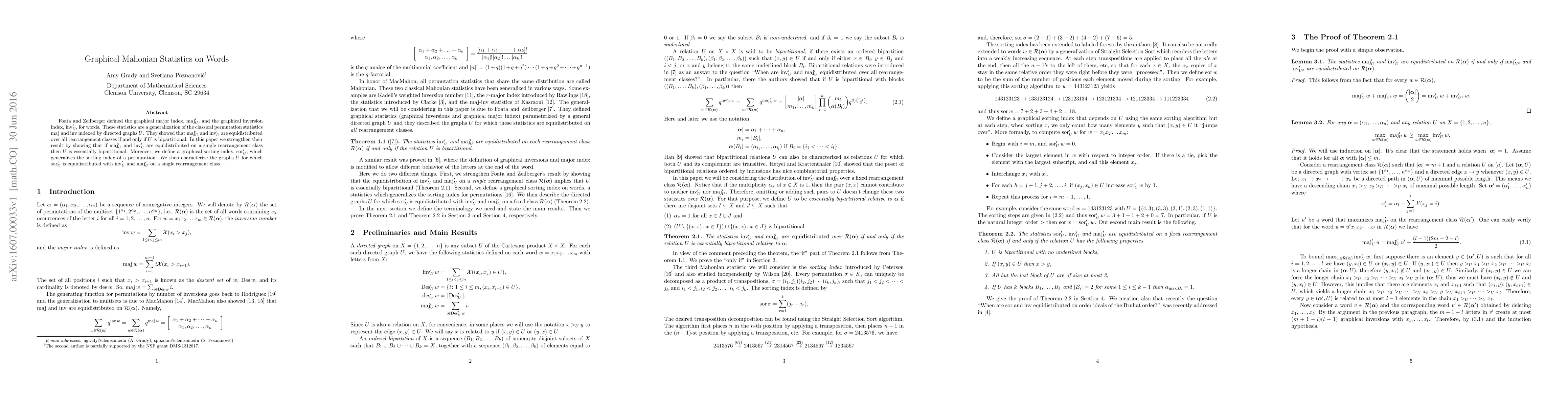 The work extends previous research by Foata and Zeilberger by strengthening equidistribution conditions and introducing a novel graphical sorting index, offering fresh perspectives on Mahonian statistics in permutation theory.