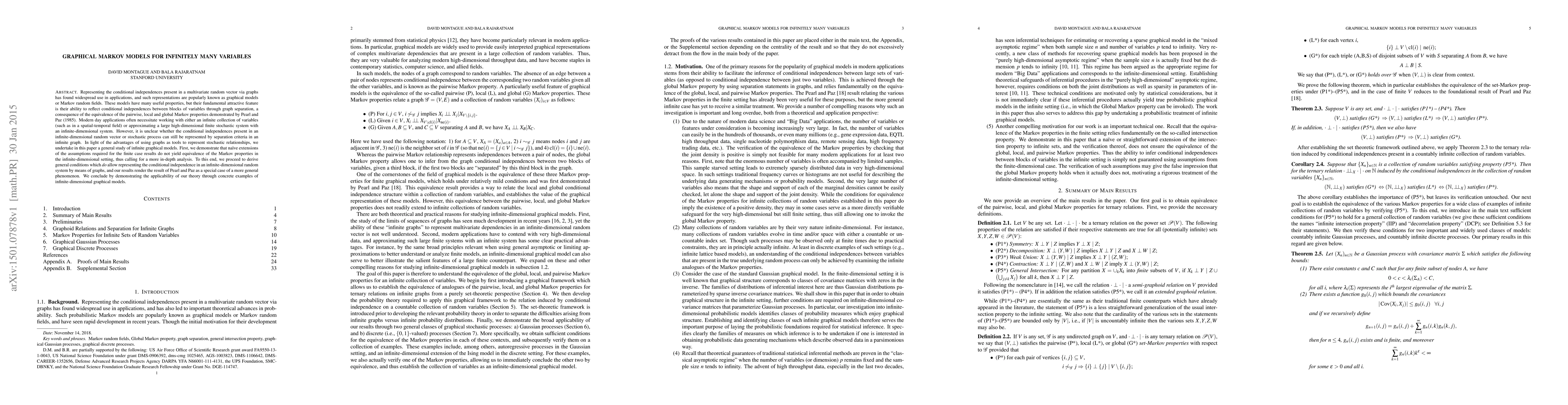 This paper investigates the extension of graphical Markov models to systems with infinitely many variables, demonstrating that traditional assumptions do not hold in infinite settings. The authors derive new conditions for representing conditional independence in an infinite-dimensional random vector through graph separation, generalizing previous finite-dimensional results, and illustrate the theory with practical examples.