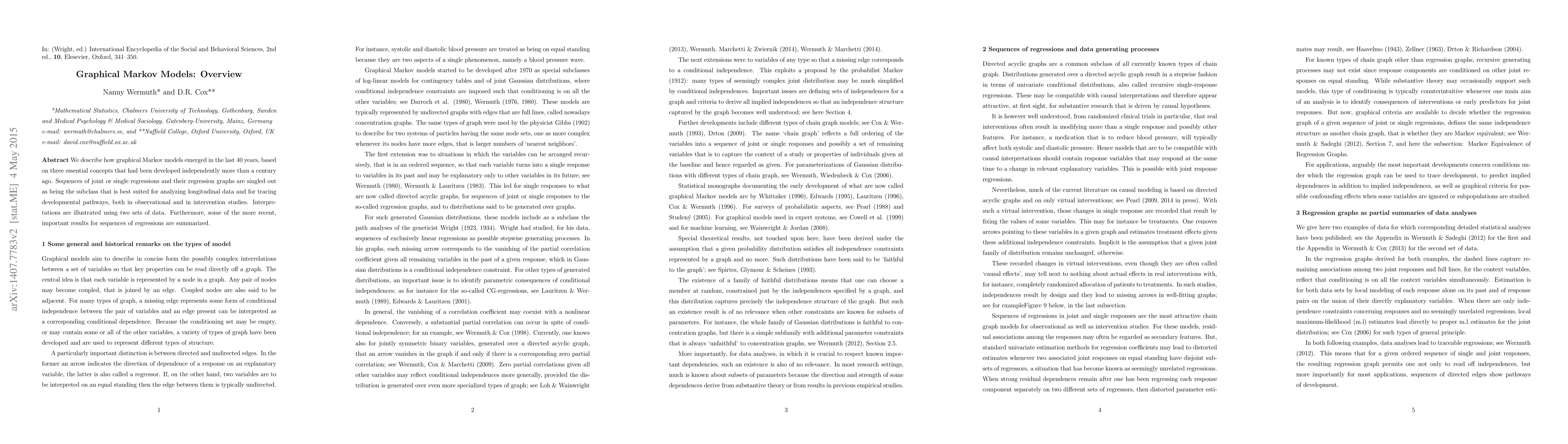 Graphical Markov models have evolved over the past 40 years, utilizing three foundational concepts from over a century ago. They are particularly effective for analyzing longitudinal data and tracing developmental pathways through sequences of regressions and their associated graphs.