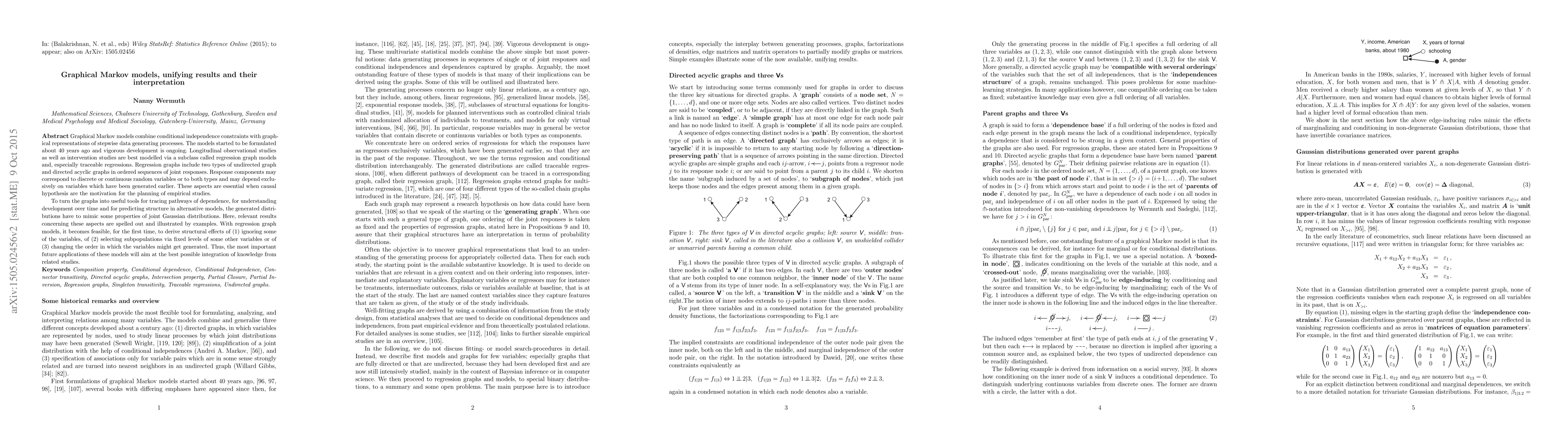 This paper discusses graphical Markov models, focusing on regression graph models for longitudinal and intervention studies. It highlights how these models can trace developmental pathways and predict structures, emphasizing the importance of conditional independence and the integration of knowledge from related studies.