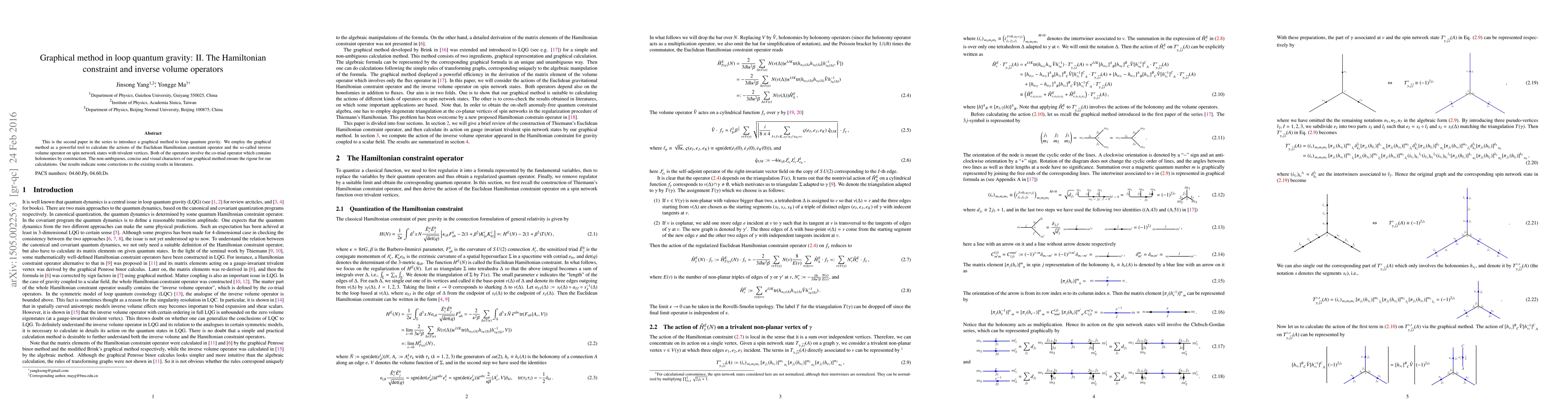 This paper introduces a graphical method to loop quantum gravity, applying it to calculate the Euclidean Hamiltonian constraint and inverse volume operators on spin network states. The graphical method provides a rigorous, unambiguous, and visual approach, revealing corrections to previous results.