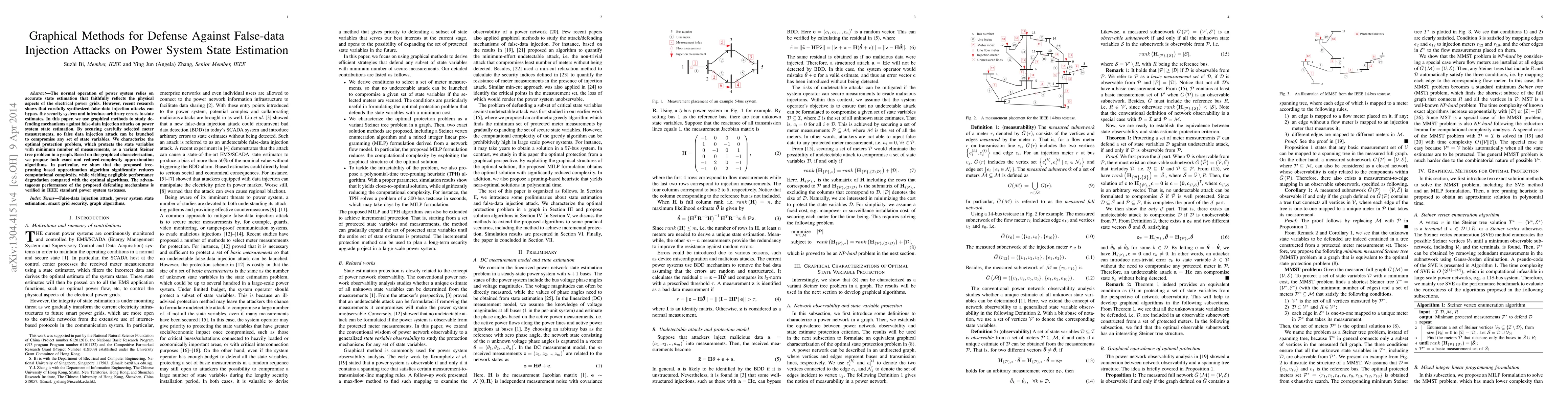 This paper proposes graphical methods to defend against false-data injection attacks on power system state estimation, securing selected meter measurements to prevent attacks. It characterizes the optimal protection problem as a variant Steiner tree problem and presents both exact and approximation algorithms, with the latter showing reduced complexity and comparable performance.