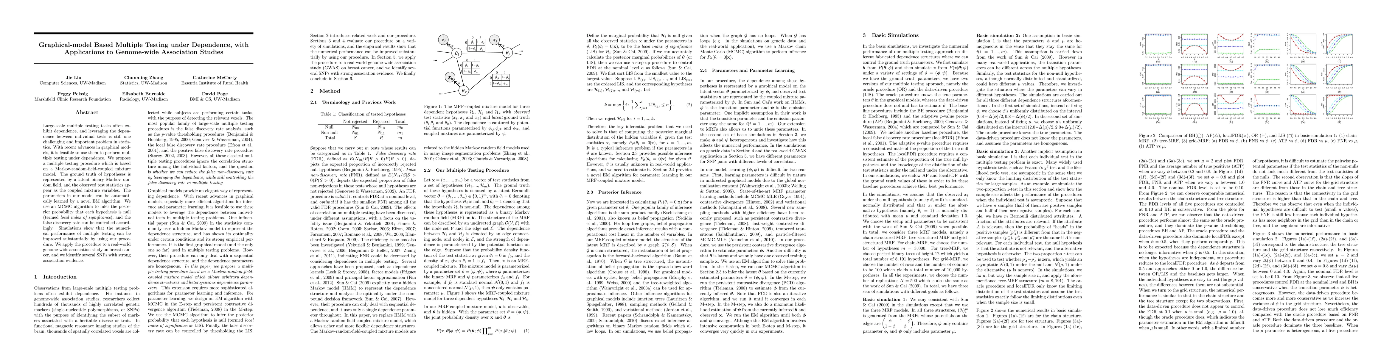 This paper proposes a graphical-model based multiple testing procedure to handle dependence in large-scale tests, improving performance over traditional methods. The method uses a Markov-random-field-coupled mixture model and an EM algorithm for parameter learning, controlling the false discovery rate effectively.