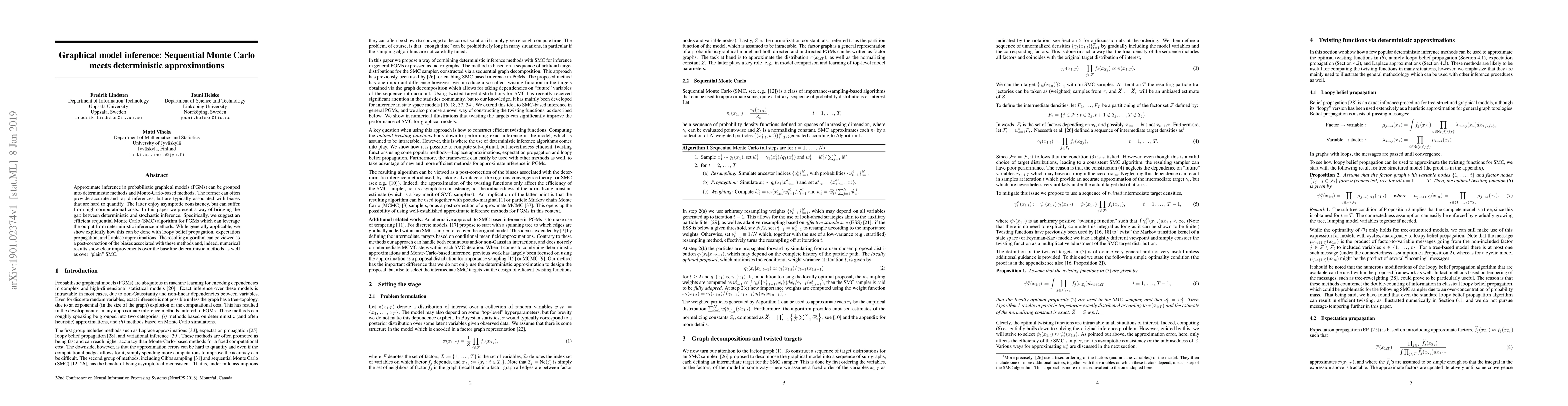 This paper proposes an efficient sequential Monte Carlo (SMC) algorithm for probabilistic graphical models that leverages deterministic inference methods to correct associated biases. The approach combines the rapid inference of deterministic methods with the consistency of SMC, demonstrating improvements over both baseline deterministic and plain SMC methods.