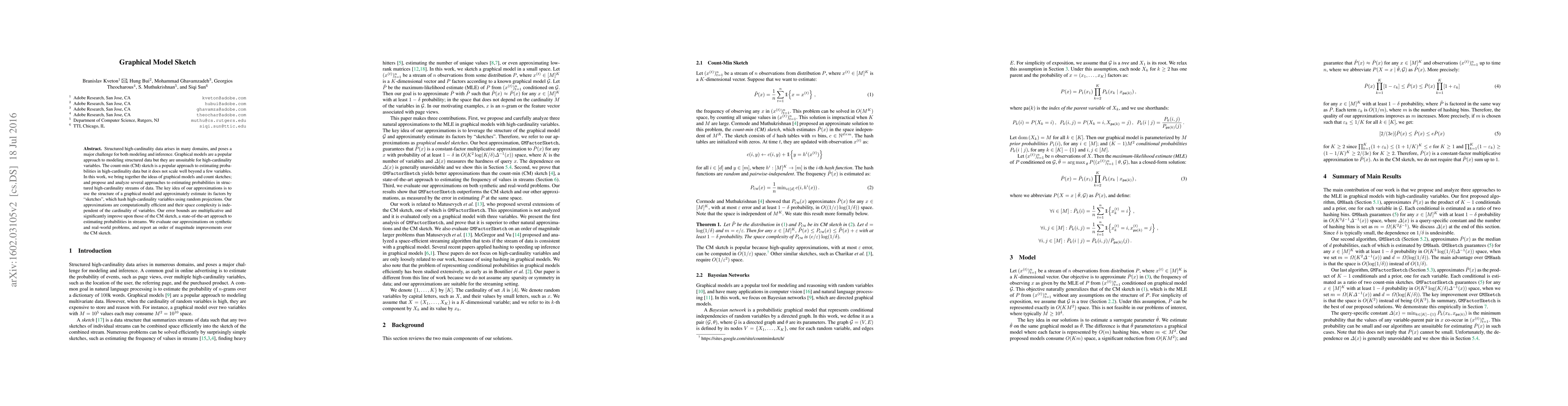 Researchers developed an approach to estimate probabilities in structured high-cardinality data using graphical models and random projections, achieving order of magnitude improvements over existing methods. The new method is computationally efficient and scalable, with multiplicative error bounds that outperform state-of-the-art approaches like the count-min sketch.