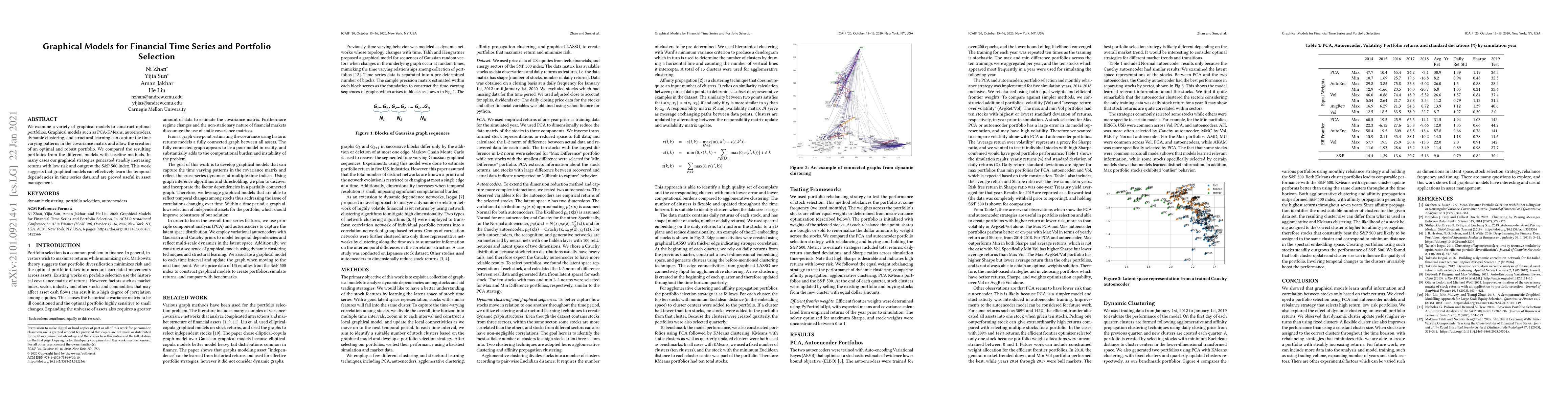 We examine a variety of graphical models to construct optimal portfolios. Graphical models such as PCA-KMeans, autoencoders, dynamic clustering, and structural learning can capture the time varying patterns in the covariance matrix and allow the creation of an optimal and robust portfolio. We compared the resulting portfolios from the different models with baseline methods. In many cases our graphical strategies generated steadily increasing returns with low risk and outgrew the S&P 500 index. This work suggests that graphical models can effectively learn the temporal dependencies in time series data and are proved useful in asset management.