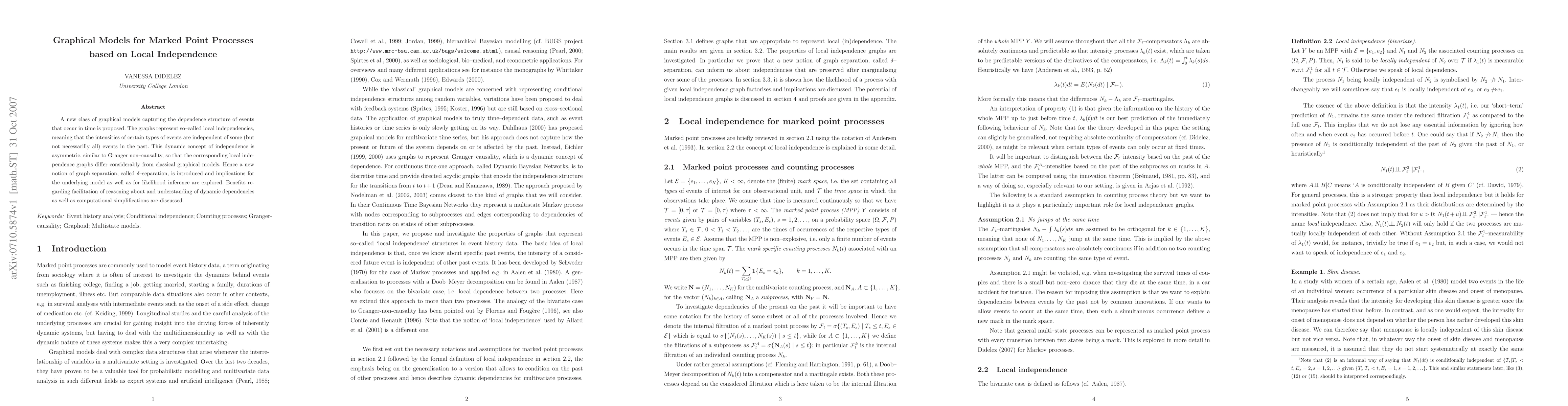 A new class of graphical models capturing the dependence structure of events that occur in time is proposed. The graphs represent so-called local independences, meaning that the intensities of certain types of events are independent of some (but not necessarily all) events in the past. This dynamic concept of independence is asymmetric, similar to Granger non-causality, so that the corresponding local independence graphs differ considerably from classical graphical models. Hence a new notion of graph separation, called delta-separation, is introduced and implications for the underlying model as well as for likelihood inference are explored. Benefits regarding facilitation of reasoning about and understanding of dynamic dependencies as well as computational simplifications are discussed.