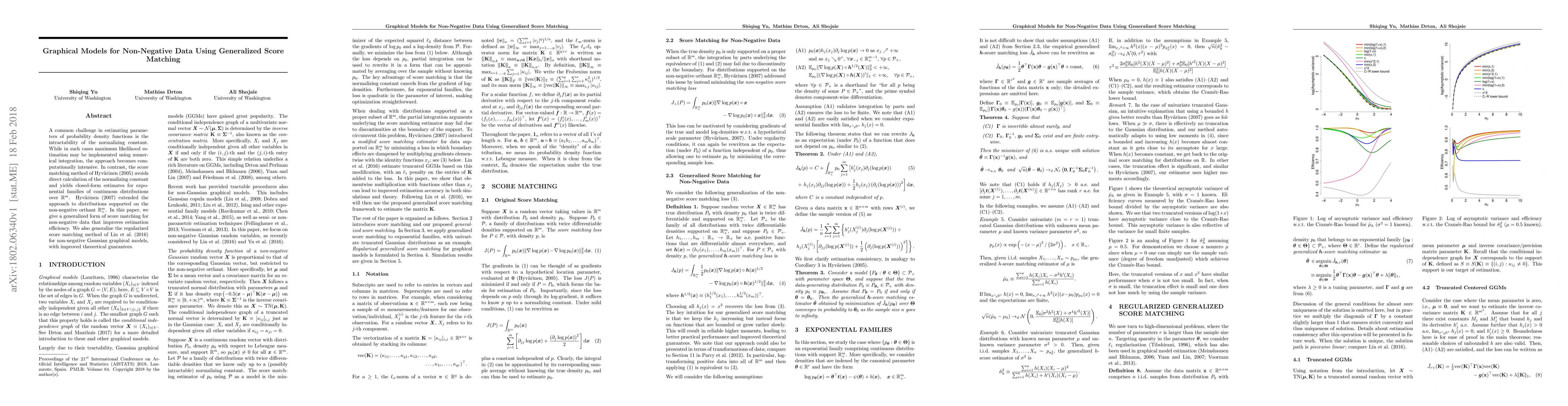 This paper proposes a generalized score matching method for estimating parameters of probability density functions for non-negative data, improving efficiency over traditional numerical integration methods. It also extends the regularized score matching method for non-negative Gaussian graphical models with enhanced theoretical guarantees.