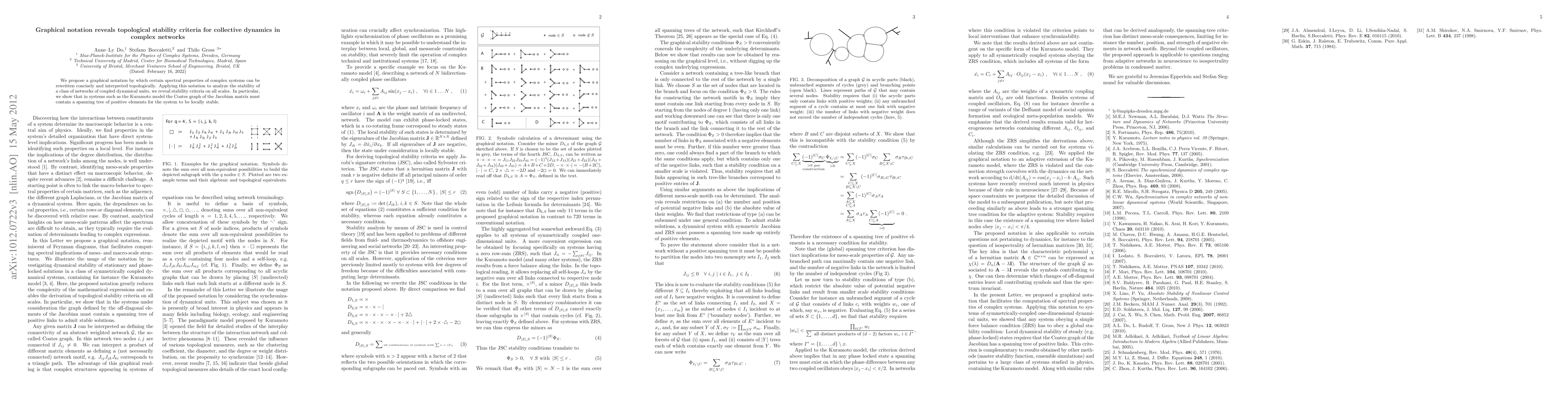 We propose a graphical notation by which certain spectral properties of complex systems can be rewritten concisely and interpreted topologically. Applying this notation to analyze the stability of a class of networks of coupled dynamical units, we reveal stability criteria on all scales. In particular, we show that in systems such as the Kuramoto model the Coates graph of the Jacobian matrix must contain a spanning tree of positive elements for the system to be locally stable.