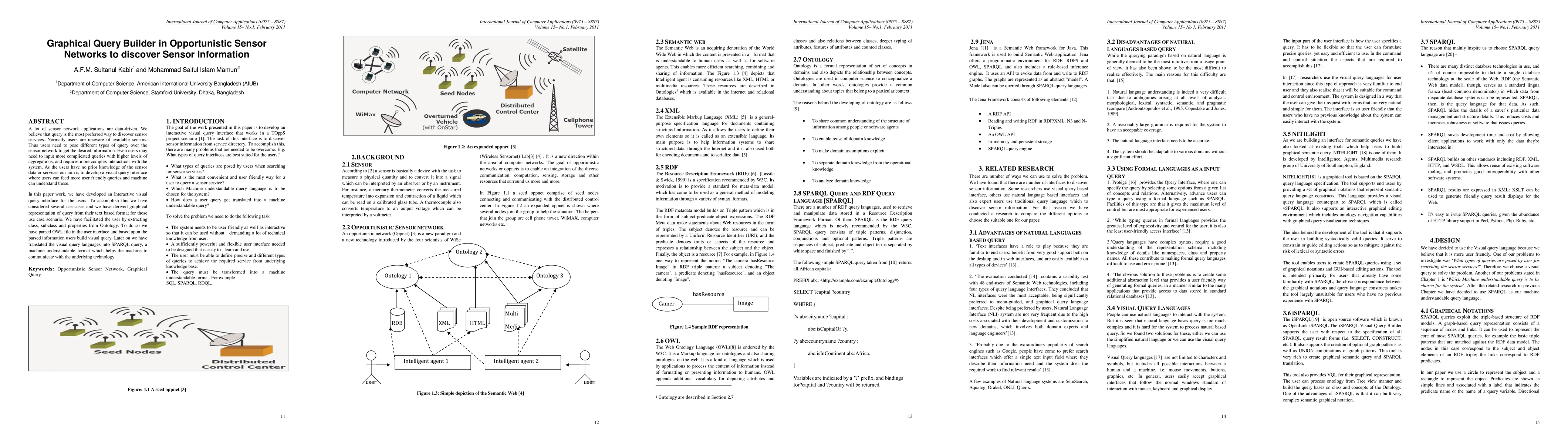 A lot of sensor network applications are data-driven. We believe that query is the most preferred way to discover sensor services. Normally users are unaware of available sensors. Thus users need to pose different types of query over the sensor network to get the desired information. Even users may need to input more complicated queries with higher levels of aggregations, and requires more complex interactions with the system. As the users have no prior knowledge of the sensor data or services our aim is to develop a visual query interface where users can feed more user friendly queries and machine can understand those. In this paper work, we have developed an Interactive visual query interface for the users. To accomplish this we have considered several use cases and we have derived graphical representation of query from their text based format for those use case scenario. We have facilitated the user by extracting class, subclass and properties from Ontology. To do so we have parsed OWL file in the user interface and based upon the parsed information users build visual query. Later on we have translated the visual query languages into SPARQL query, a machine understandable format which helps the machine to communicate with the underlying technology.