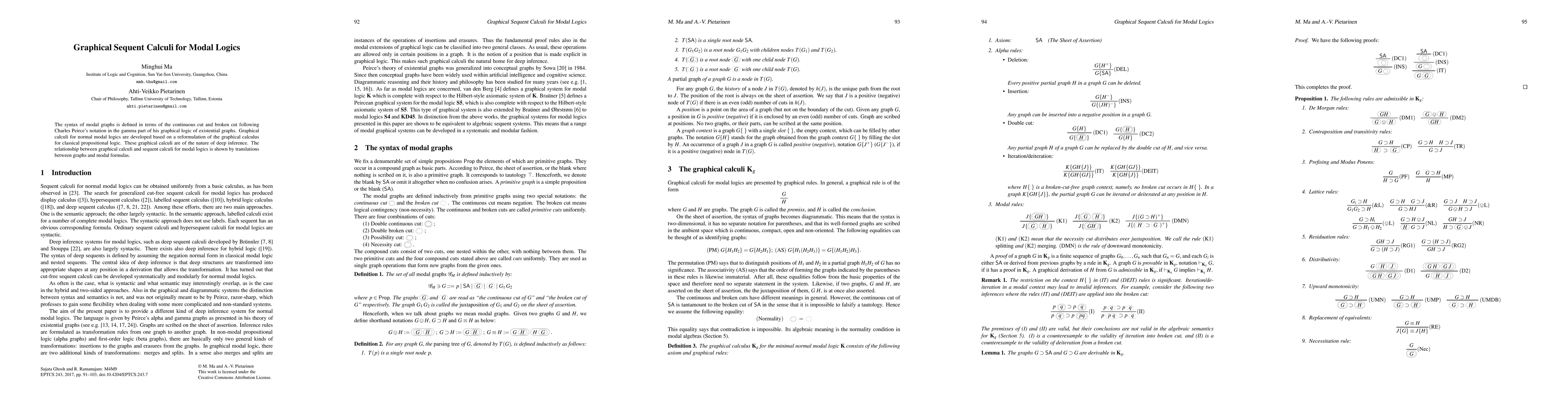 This paper develops graphical sequent calculi for normal modal logics based on Peirce's graphical logic, showing their equivalence to traditional sequent calculi through translations between modal graphs and formulas. It presents a novel deep inference approach using modal graphs.