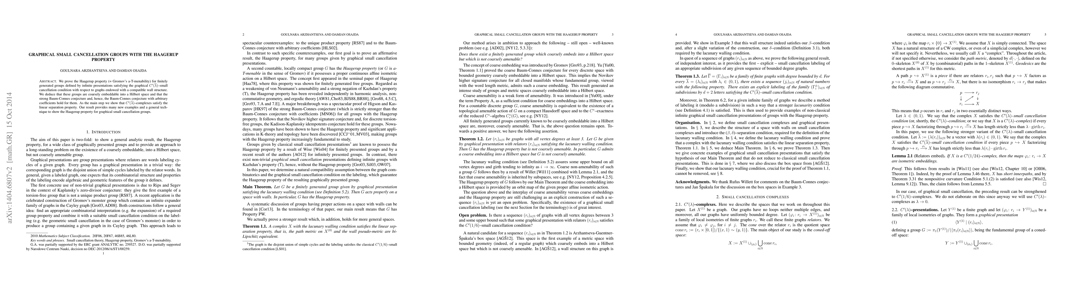 This paper proves the Haagerup property for finitely generated graphical small cancellation groups, showing they are coarsely embeddable into a Hilbert space. The proof hinges on demonstrating that C'(lambda)-complexes meet the linear separation property, providing a new technique for establishing the Haagerup property.