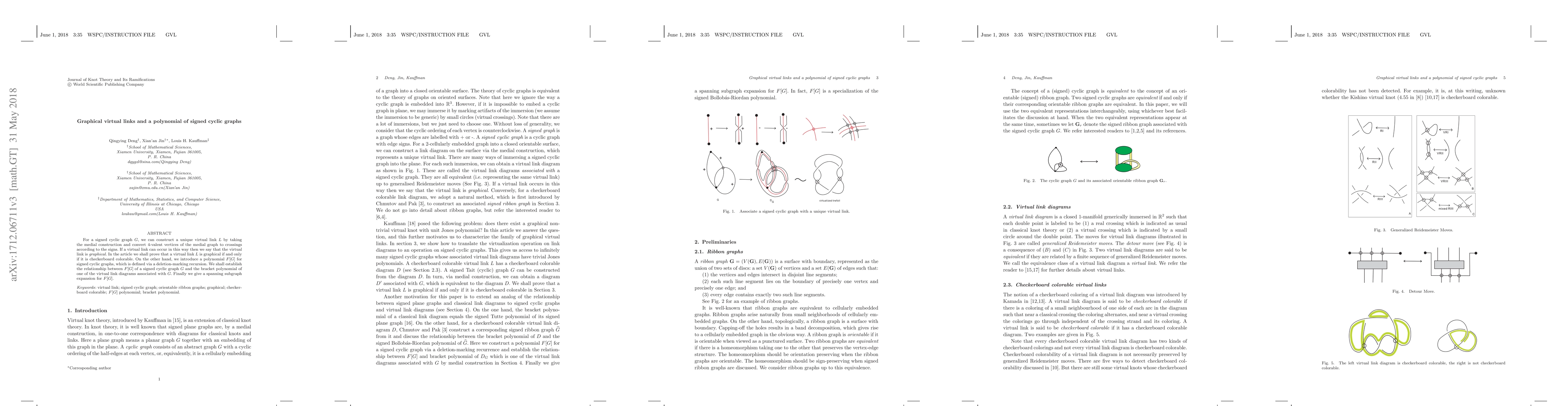 For a signed cyclic graph G, we can construct a unique virtual link L by taking the medial construction and convert 4-valent vertices of the medial graph to crossings according to the signs. If a virtual link can occur in this way then we say that the virtual link is graphical. In the article we shall prove that a virtual link L is graphical if and only if it is checkerboard colorable. On the other hand, we introduce a polynomial F[G] for signed cyclic graphs, which is defined via a deletion-marking recursion. We shall establish the relationship between F[G] of a signed cyclic graph G and the bracket polynomial of one of the virtual link diagrams associated with G. Finally we give a spanning subgraph expansion for F[G].