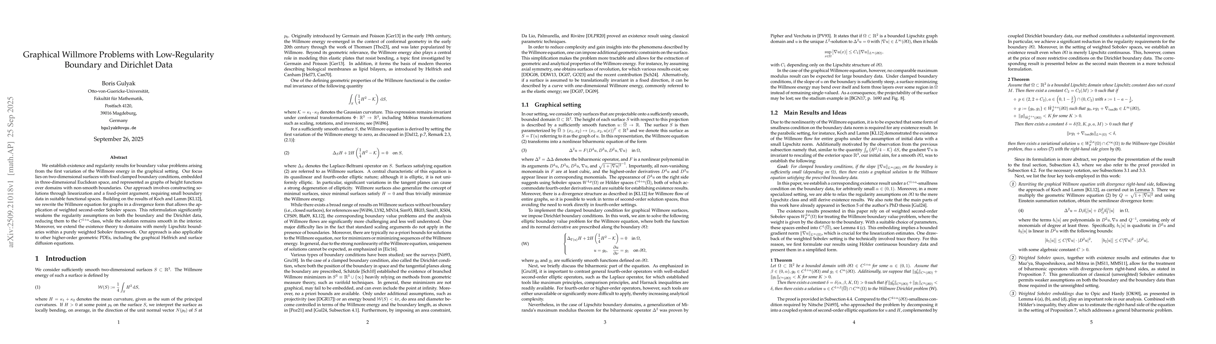 The research employs a combination of variational methods, elliptic PDE theory, and functional analysis to study the Dirichlet problem for the Willmore equation in weighted Sobolev spaces. It utilizes fixed-point theorems and embedding theorems for weighted Sobolev spaces to establish existence and regularity results.