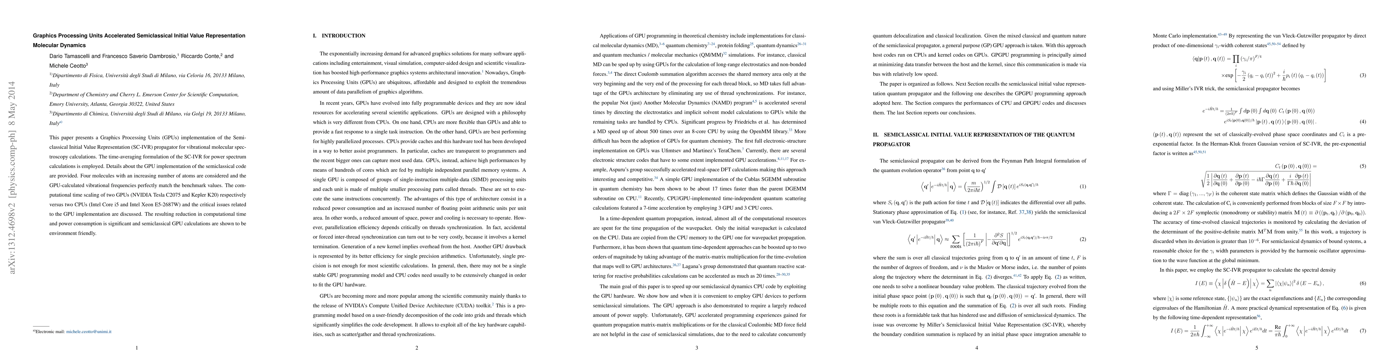 This paper details a GPU-based implementation of the Semiclassical Initial Value Representation (SC-IVR) for molecular dynamics, achieving significant reductions in computational time and power consumption compared to CPU calculations. The study demonstrates the method's accuracy and efficiency through vibrational frequency calculations on four molecules.