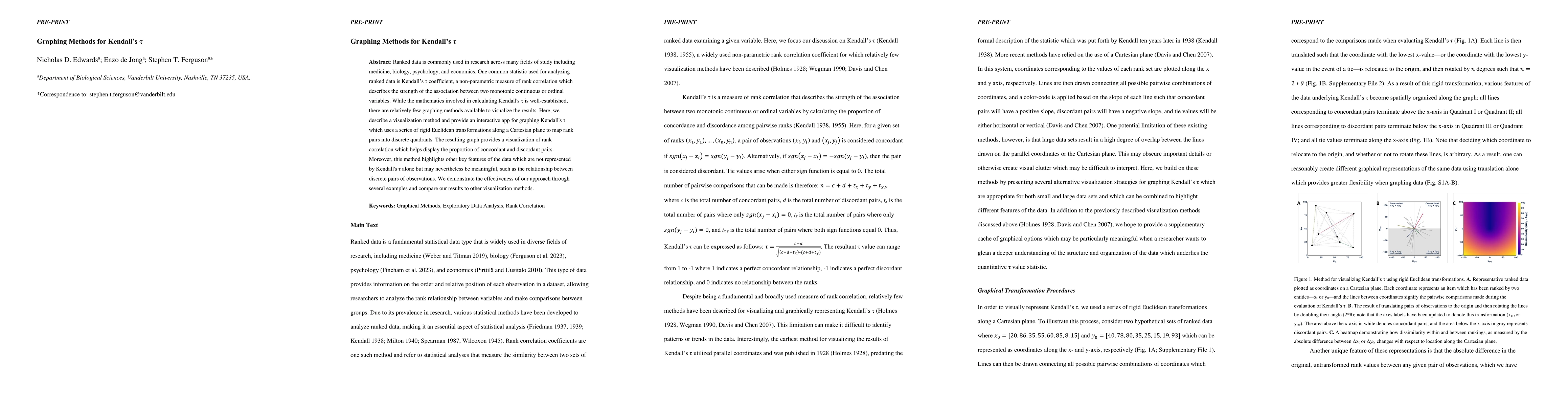 Ranked data is commonly used in research across many fields of study including medicine, biology, psychology, and economics. One common statistic used for analyzing ranked data is Kendall's {\tau} coefficient, a non-parametric measure of rank correlation which describes the strength of the association between two monotonic continuous or ordinal variables. While the mathematics involved in calculating Kendall's {\tau} is well-established, there are relatively few graphing methods available to visualize the results. Here, we describe a visualization method and provide an interactive app for graphing Kendall's {\tau} which uses a series of rigid Euclidean transformations along a Cartesian plane to map rank pairs into discrete quadrants. The resulting graph provides a visualization of rank correlation which helps display the proportion of concordant and discordant pairs. Moreover, this method highlights other key features of the data which are not represented by Kendall's {\tau} alone but may nevertheless be meaningful, such as the relationship between discrete pairs of observations. We demonstrate the effectiveness of our approach through several examples and compare our results to other visualization methods.