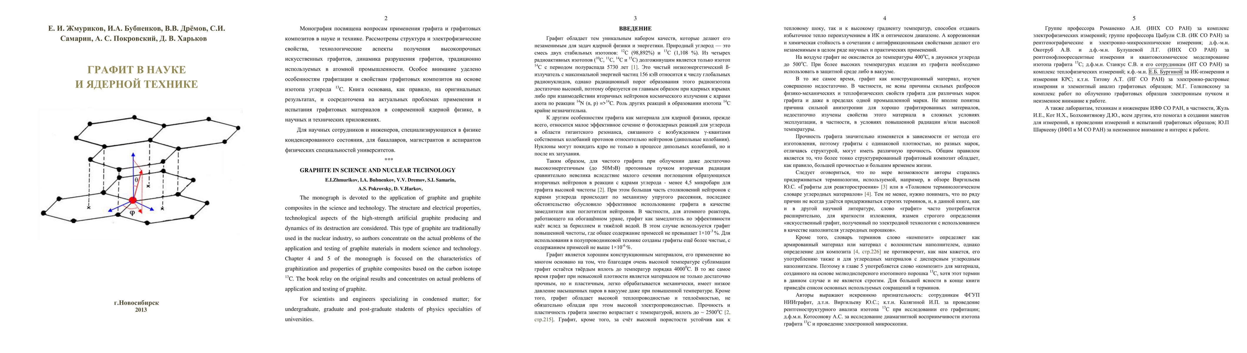 The monograph is devoted to the application of graphite and graphite composites in science and technology. The structure and electrical properties, the technological aspects of production of high-strength synthetic graphites, the dynamics of the graphite destruction, traditionally used in the nuclear industry are discussed. It is focuses on the characteristics of graphitization and properties of graphite composites based on carbon isotope 13C. The book is based, generally, on the original results, and concentrated on the actual problems of application and testing of graphite materials in modern nuclear physics, in scientific and technical applications. For scientists and engineers specializing in nuclear physics and engineering, physics of nuclear reactors, condensed matter, for undergraduate, graduate and post-graduate students of universities physical specialties.