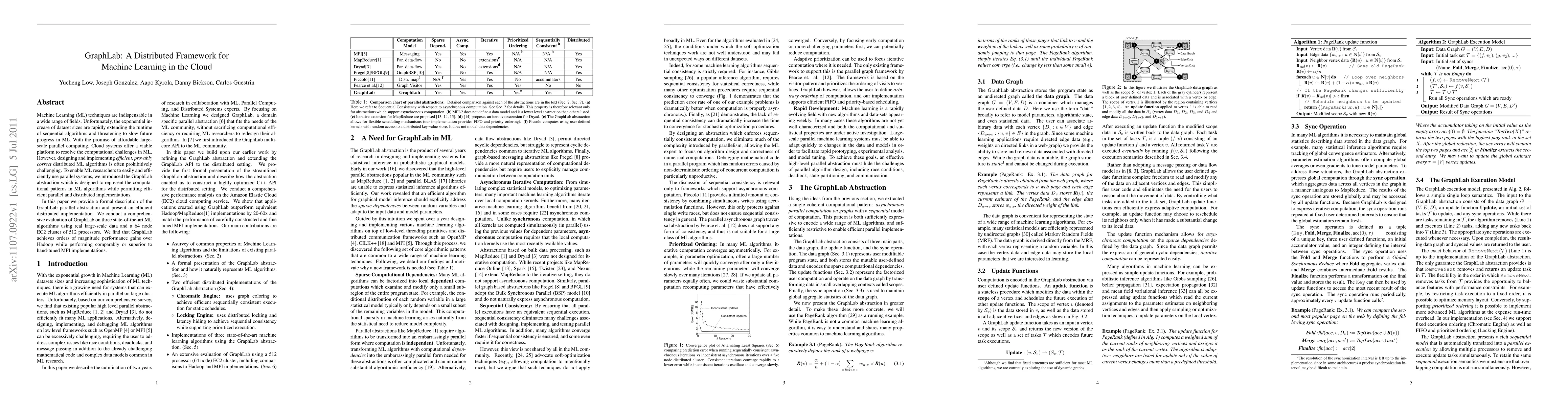 GraphLab is a distributed framework designed to facilitate efficient machine learning (ML) in cloud environments by enabling parallel and distributed implementations of ML algorithms. The framework achieves significant performance improvements over Hadoop and often outperforms hand-tuned MPI implementations, as demonstrated through evaluations on large-scale datasets.