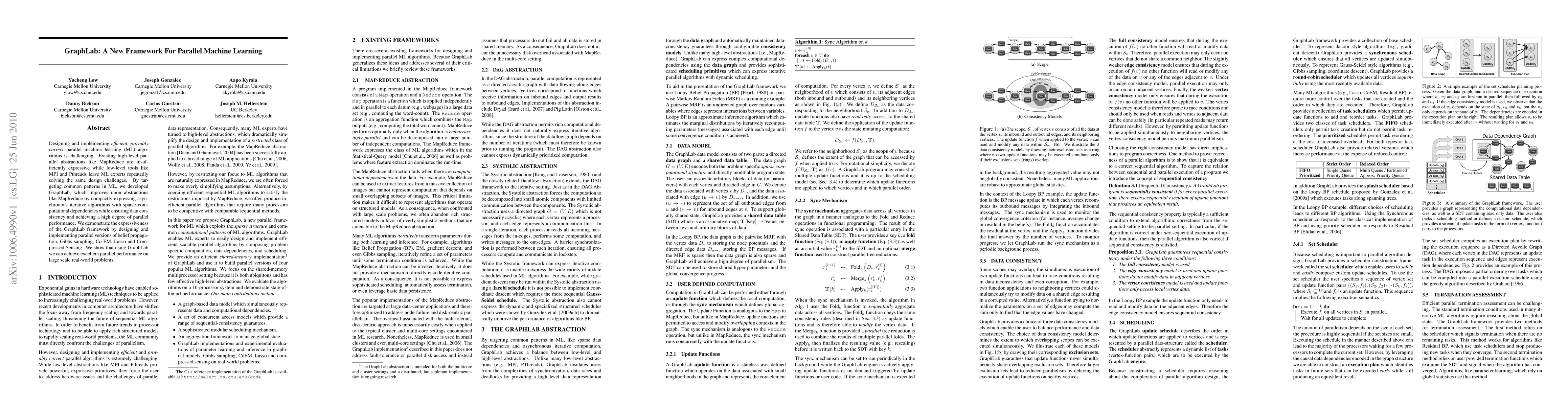GraphLab introduces a novel abstraction that integrates local computation, data dependencies, and flexible scheduling.