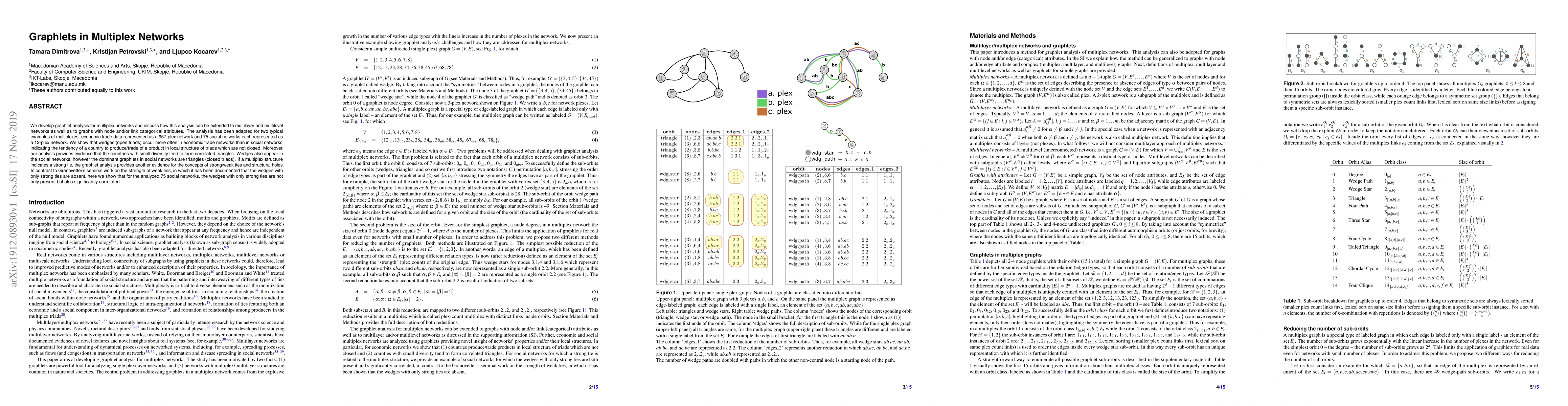 This paper develops graphlet analysis for multiplex networks, demonstrating its application to economic trade and social networks. It finds that economic trade networks are characterized by more open triads (wedges) compared to social networks, which predominantly feature closed triads (triangles), providing insights into the concepts of strong and weak ties in network structures.