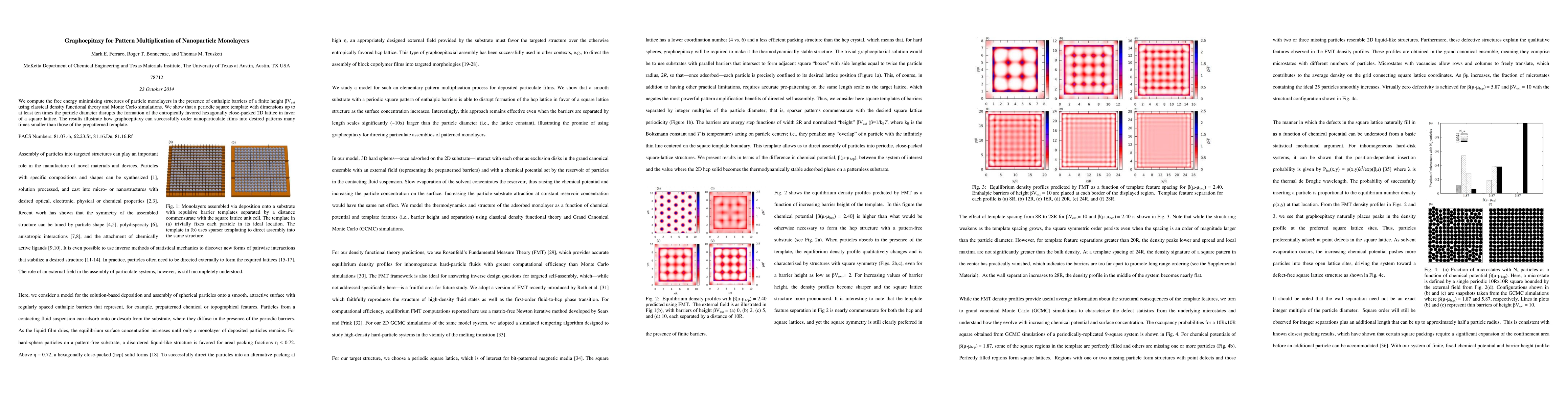 Researchers used computer simulations to study how nanoparticles arrange themselves in different patterns, finding that a template with specific dimensions can control the formation of desired structures. This technique, called graphoepitaxy, allows for pattern multiplication at smaller scales than traditional methods.