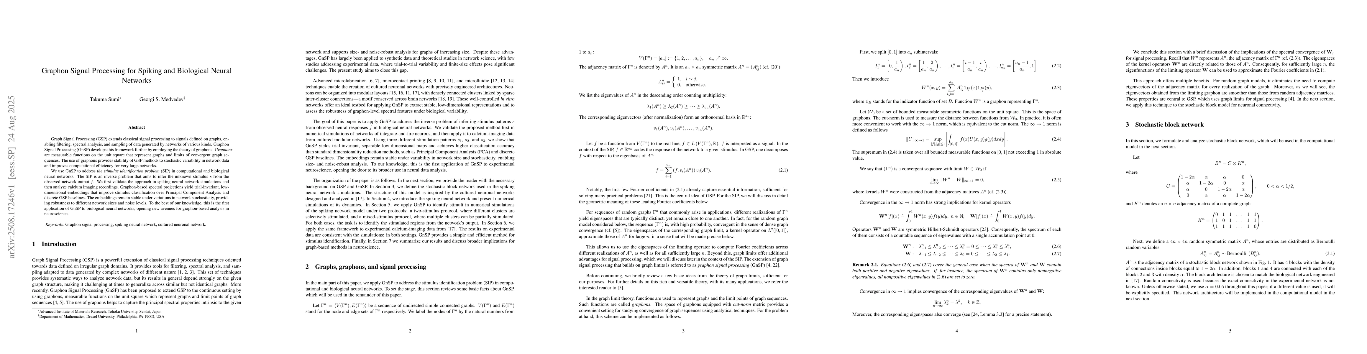 Graph Signal Processing (GSP) extends classical signal processing to signals defined on graphs, enabling filtering, spectral analysis, and sampling of data generated by networks of various kinds. Graphon Signal Processing (GnSP) develops this framework further by employing the theory of graphons. Graphons are measurable functions on the unit square that represent graphs and limits of convergent graph sequences. The use of graphons provides stability of GSP methods to stochastic variability in network data and improves computational efficiency for very large networks. We use GnSP to address the stimulus identification problem (SIP) in computational and biological neural networks. The SIP is an inverse problem that aims to infer the unknown stimulus s from the observed network output f. We first validate the approach in spiking neural network simulations and then analyze calcium imaging recordings. Graphon-based spectral projections yield trial-invariant, lowdimensional embeddings that improve stimulus classification over Principal Component Analysis and discrete GSP baselines. The embeddings remain stable under variations in network stochasticity, providing robustness to different network sizes and noise levels. To the best of our knowledge, this is the first application of GnSP to biological neural networks, opening new avenues for graphon-based analysis in neuroscience.