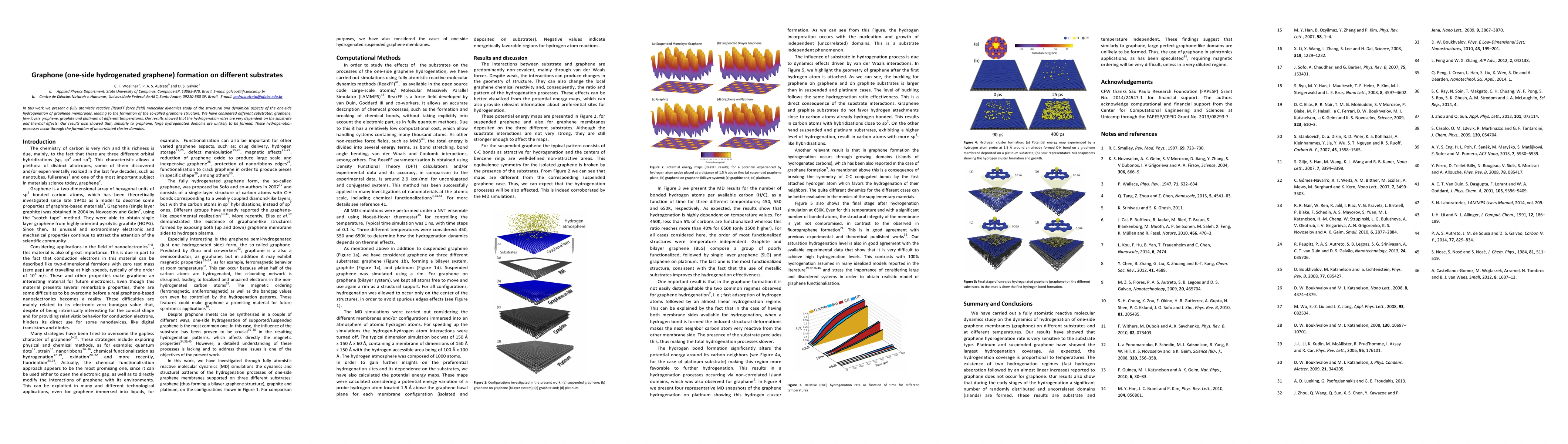This study investigates the formation of graphone on various substrates using atomistic reactive molecular dynamics, revealing that hydrogenation rates are substrate-dependent and influenced by thermal effects. The results suggest that large hydrogenated domains are improbable, forming instead through uncorrelated cluster domains.