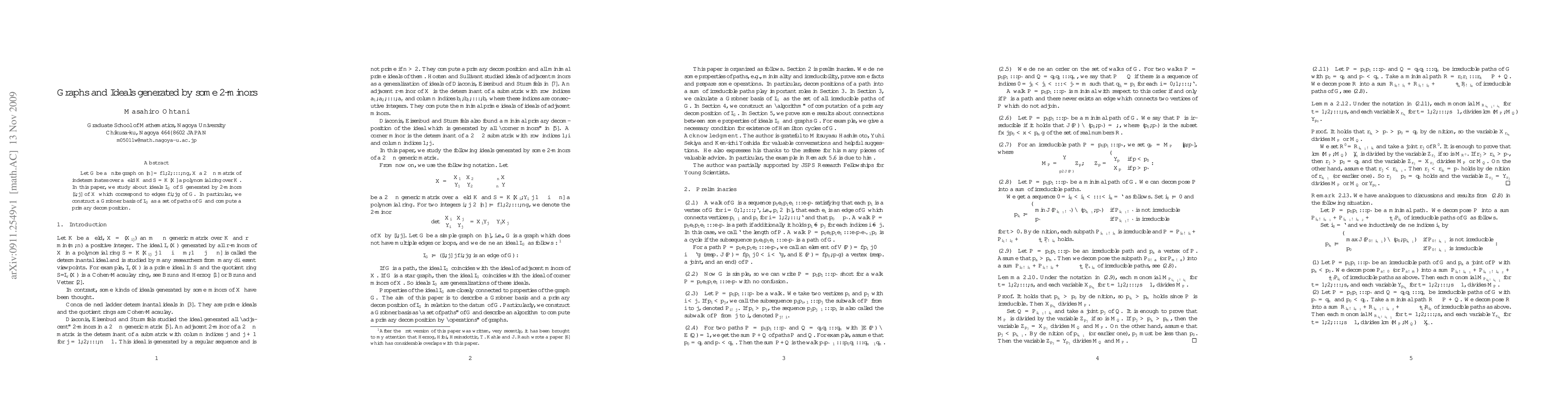 This paper investigates ideals I_G generated by 2-minors corresponding to edges in a graph G, constructs a Groebner basis using paths in G, and computes a primary decomposition of I_G.