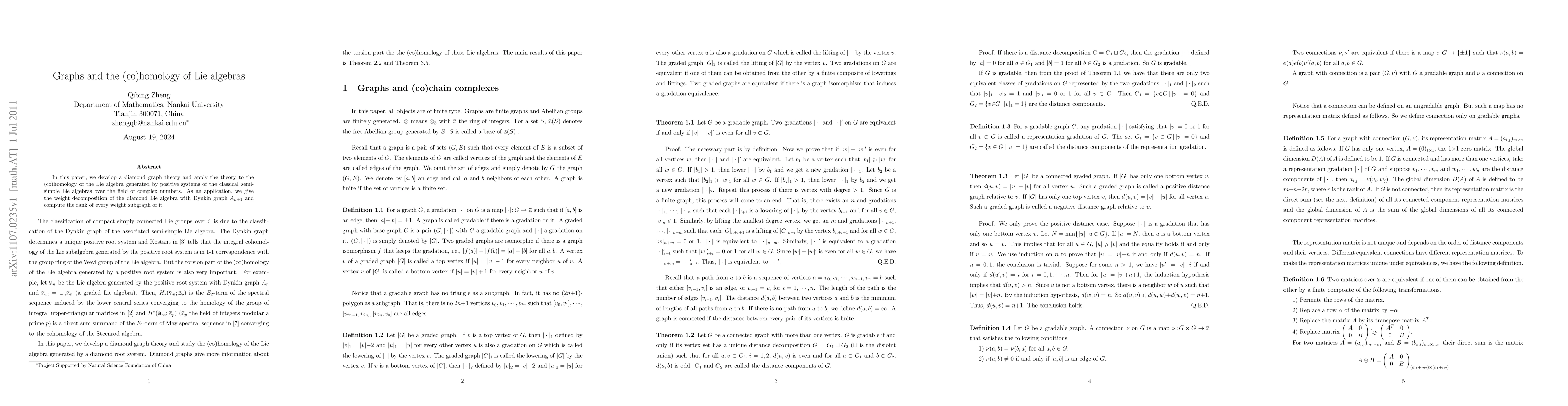 In this paper, we develop a diamond graph theory and apply the theory to the (co)homology of the Lie algebra generated by positive systems of the classical semi-simple Lie algebras over the field of complex numbers. As an application, we give the weight decomposition of the diamond Lie algebra with Dynkin graph $A_{n+1}$ and compute the rank of every weight subgraph of it.